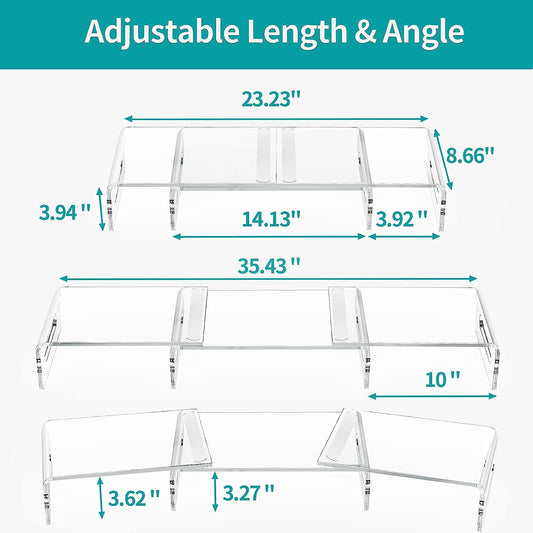Zimilar Dual Monitor Stand Riser, Acrylic Monitor Stand with Adjustable Length and Angle, Clear Monitor Stand with Storage, Monitor Stand for 2 Monitors, Premium Clear Monitor Riser for Desk