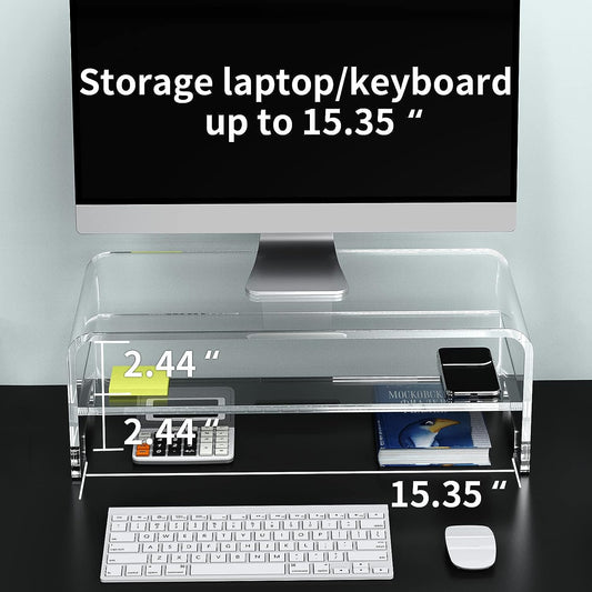 Zimilar Acrylic Monitor Stand Riser, 2-Tier Clear Acrylic Monitor Riser for Home Office, 16" Clear Monitor Stand Laptop Stand Riser for PC Screen, Printer, Mac Book