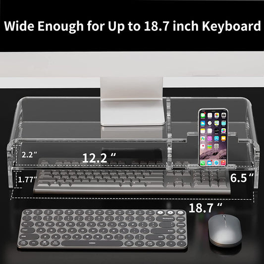 Zimilar Large Acrylic Monitor Stand Riser, 20 inch Acrylic Monitor Stand, 2-Tier Clear Monitor Stand Riser, Premium Acrylic Monitor Stand for Desk with Keyboard Storage, Clear Acrylic Laptop Stand with Built-in Phone Holder