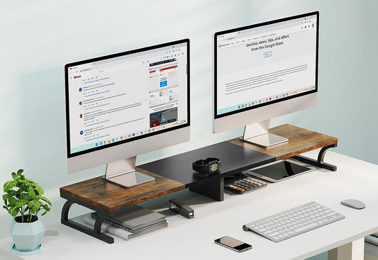 Zimilar Dual Monitor Stand Riser, Large Wood Computer Monitor Riser, Extra Long Monitor Stand for 2 Monitors with Storage for Office Accessories(Rust Brown)