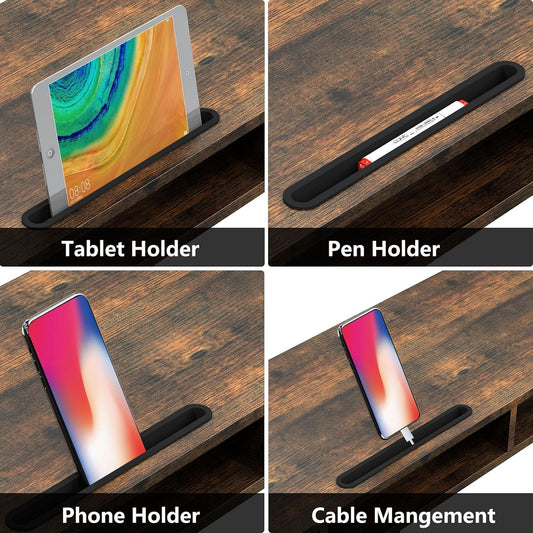 Zimilar Dual Monitor Stand Riser, Monitor Stand with Adjustable Length and Angle, Wood Monitor Stand for Desk, Monitor Riser for 2 Monitors with Storage Space (Rust Brown Large)
