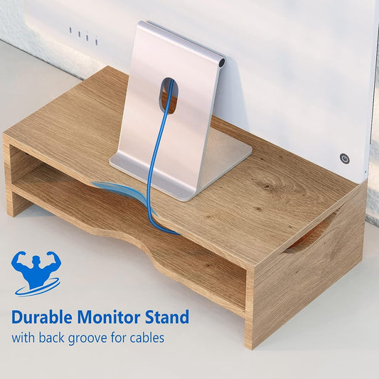 Zimilar Monitor Stand Riser, 2 Tiers Laptop Computer Monitor Riser for PC Screen, iMac, Desktop Wooden Screen Monitor Stand Riser with Storage Organizer