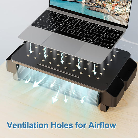 Zimilar Monitor Stand Riser with Metal Mesh Drawer, Height Adjustable Phone Holder for Computer, Laptop, Printer, Notebook, Premium Computer Storage