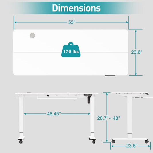 WOKA Electric Standing Desk with Keyboard Tray, 55" x 24" Stand Up Desk, Height Adjustable Sit Stand Desk with Memory Controller for Home Office, Motorized Desk with Splice Board, White
