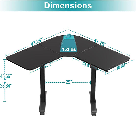 WOKA L Shaped Standing Desk, 48 x 48 Inches,Height Adjustable Electric Stand Up Desk, Sit Stand Desk with Memory Controller for Home Office, Motorized Corner Standing Desk with Splice Board, Black