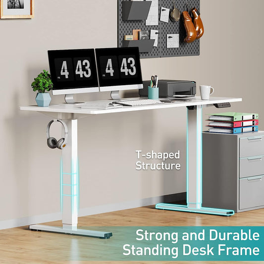 WOKA Electric Standing Desk, 59 x 24 Inches Adjustable Height Desk, Stand up Desk with Memory Controller, Ergonomic Sit to Stand Desk for Home Office, Motorized Rising Desk with Splice Board, White