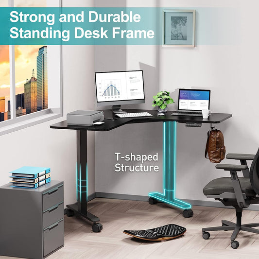 WOKA Electric Standing Desk, 59 x 24 Inches Adjustable Height Desk, Stand up Desk with Memory Controller, Ergonomic Sit to Stand Desk for Home Office, Motorized Rising Desk with Splice Board, Black