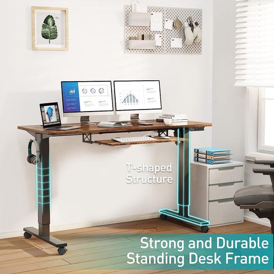 WOKA Electric Standing Desk with Keyboard Tray, 55" x 24" Stand Up Desk, Height Adjustable Sit Stand Desk with Memory Controller for Home Office, Motorized Desk with Splice Board, Rustic