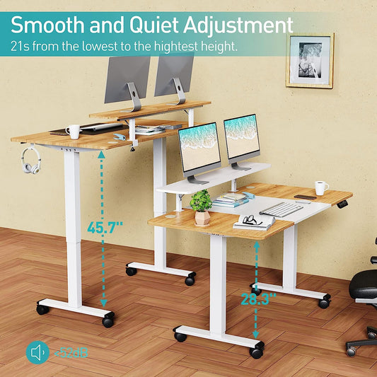 WOKA 55 x 28 Inch Electric Standing Desk with Wheels, Height Adjustable Stand up Desk with a Monitor Stand Riser, Standing Computer Desk with Memory Controllers, Adjustable Desks for Home Office