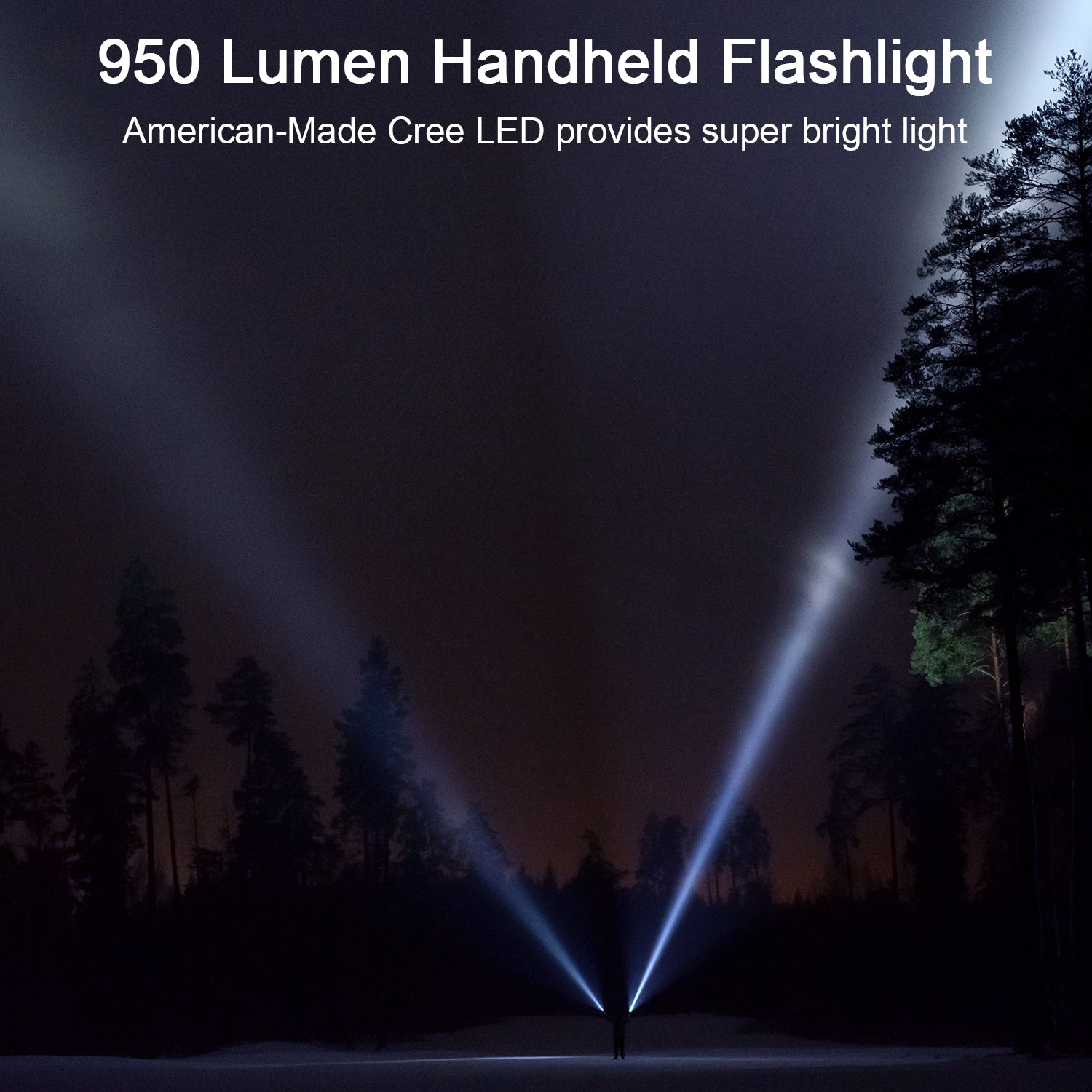 GOFORWILD Rechargeable LED Flashlight with 5 Modes, Tactical Flashlight 950 High Lumen, Zoomable, IP65 Water-Resistant Powerful Camping and Emergency Flashlights