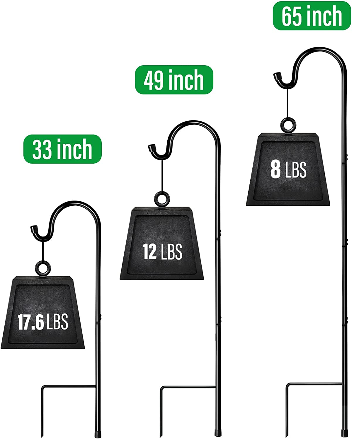- 【Built to Last】Heavy-duty steel construction, much thicker than other garden shepherds’ hooks. Holds up to 17.6 Lbs.