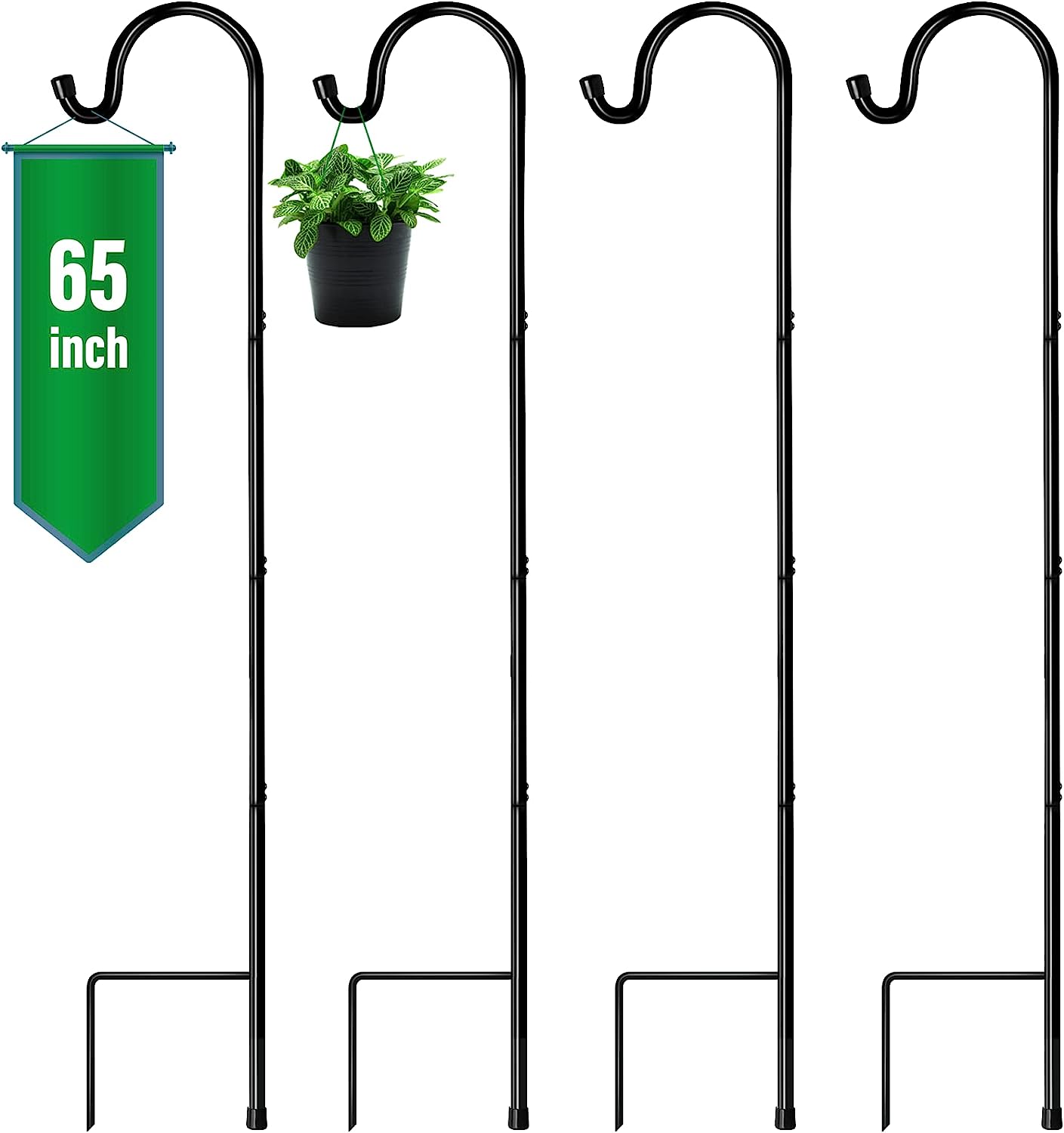 GOFORWILD Shepherd’s Hooks 4 Pack Black, 65 inches Tall, Made of Premium Metal for Garden Decor, Plant Hanger, Lantern Hook, Garden Stake and Wedding Decor, 7016