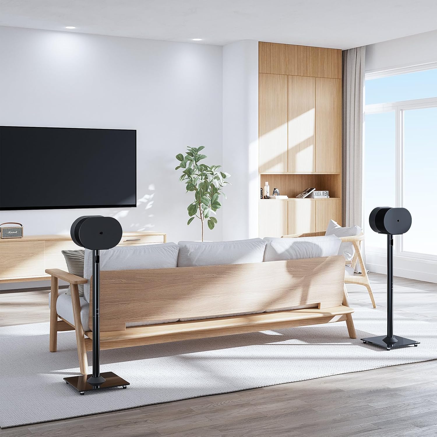 - Ear Level Surround Sound: Elevate your audio experience with our 31.7 inch height speaker stands pair. Get your Sonos Era 300 speakers up closer to ear level for better surround sound instead of at the below knee level. This rear speakers stand for Sono era 300 also help you free your speakers from a table or desk, and utilize the space. It's perfect for building a home theater