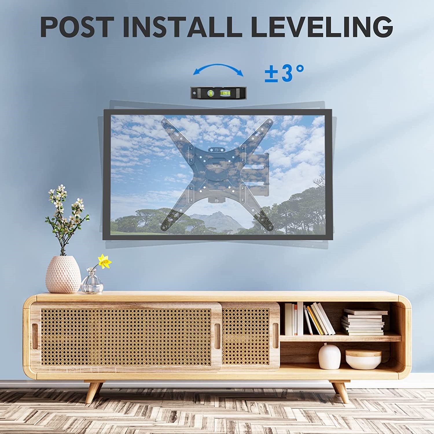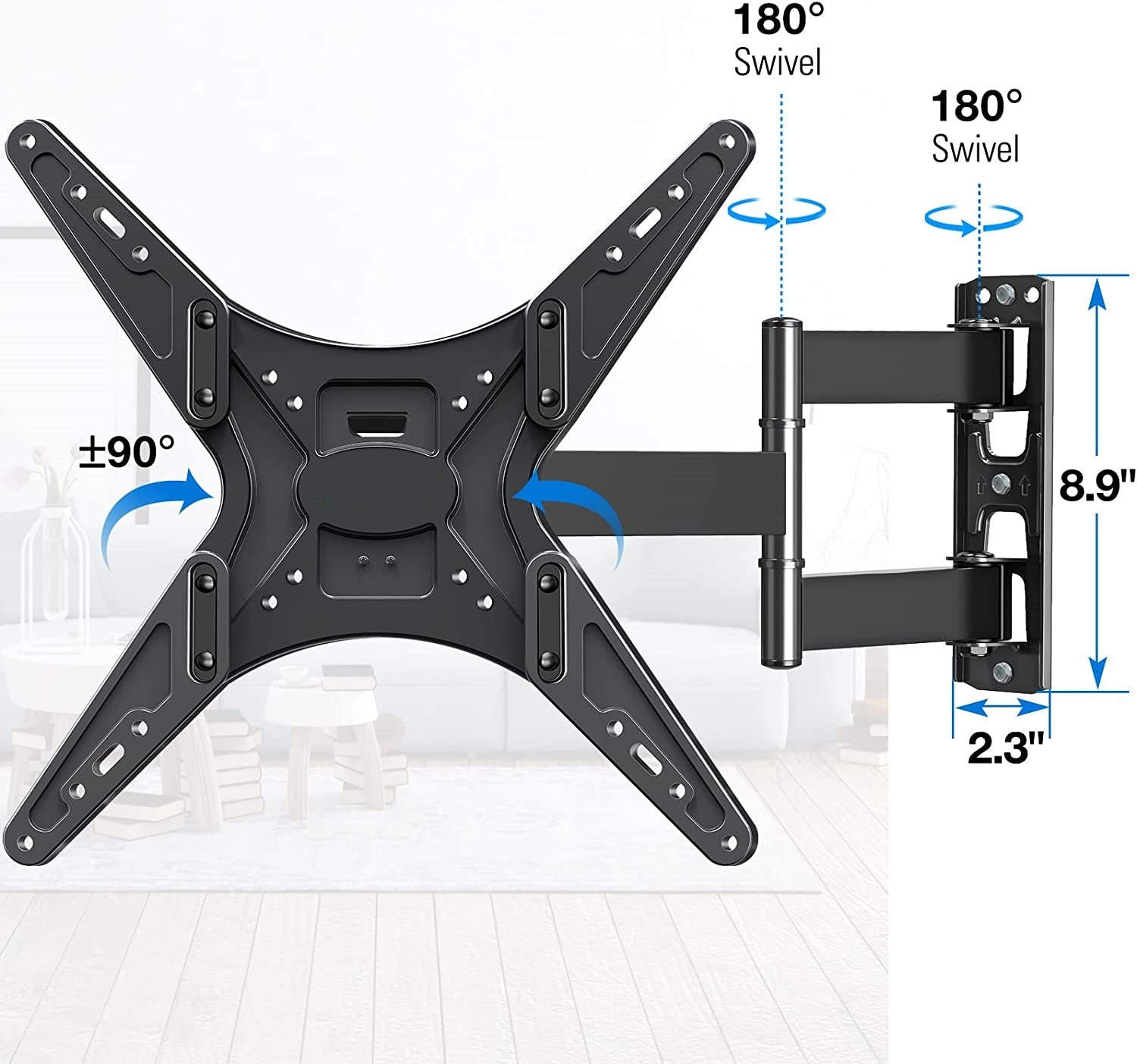 - Full Motion for Optimal Viewing: The articulating TV wall mount bracket allows +/-90°swivel left or right to provide full-motion adjustment for ideal viewing. +5°/-15° for anti-glaring, +/-3° post-installation adjustment for perfect TV leveling, and 2.5" to 18.9" wall distance adjustment for flexible movement and space savings.