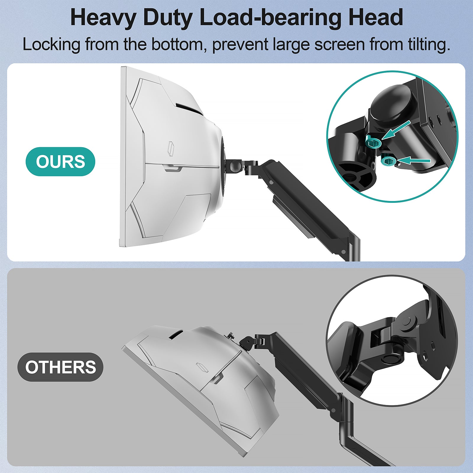 - Durability & Stability - The heavy-duty monitor mount is made of upgraded material and reinforced head, can ensure long-lasting support, working for secure screen positioning and smooth adjustments. Its design combines versatility and stability, ensuring optimal viewing and creating a more comfortable, ergonomic gaming or work station.