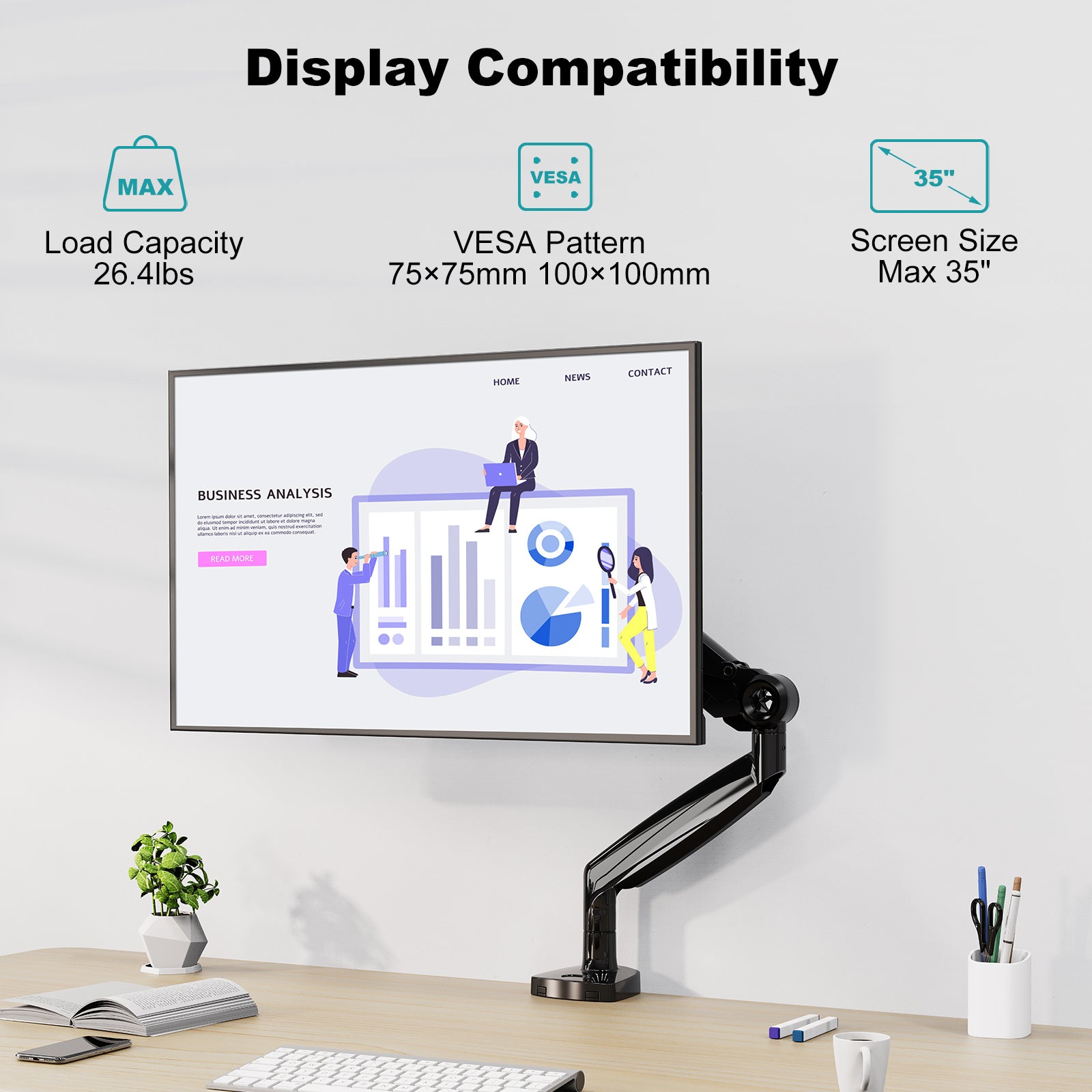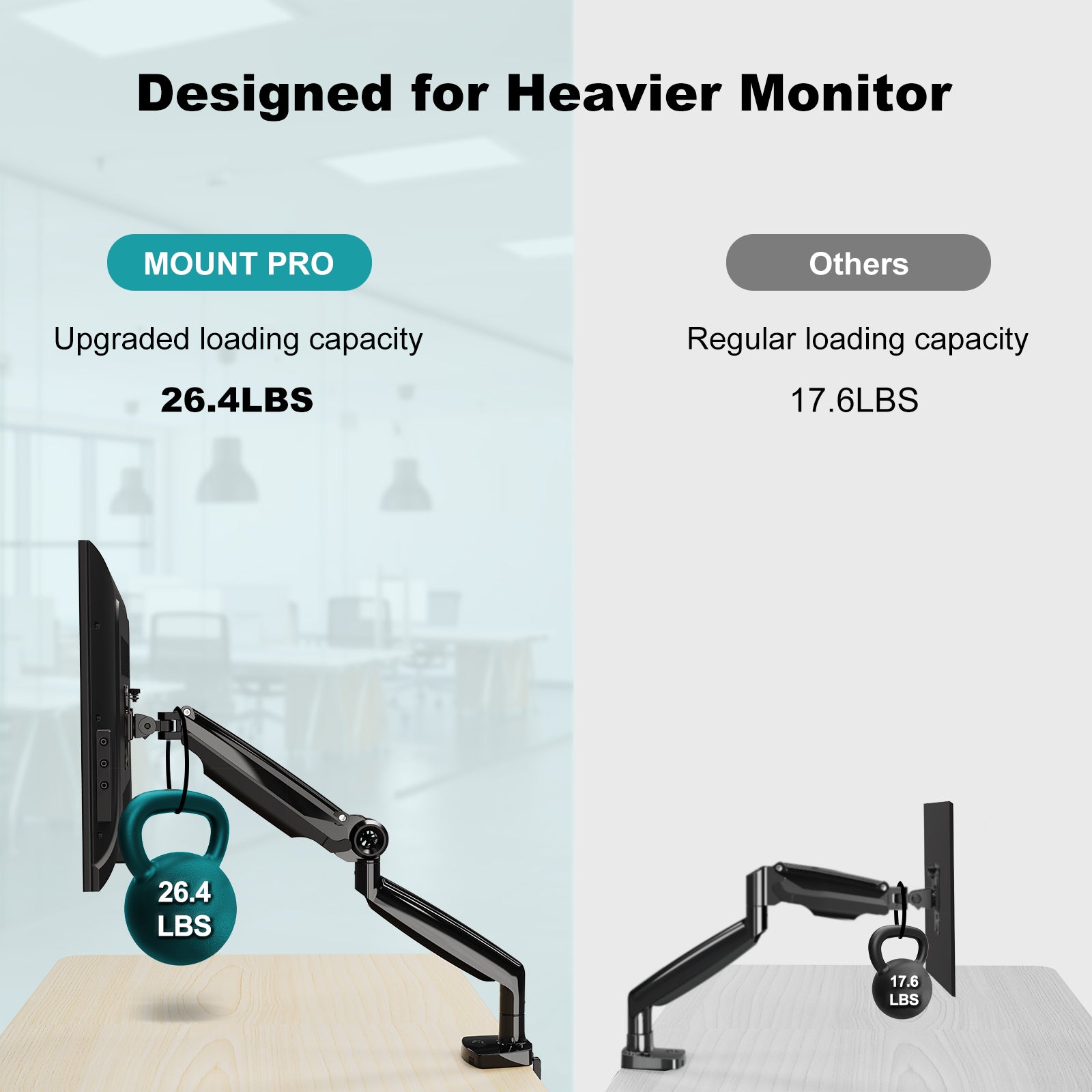 MOUNT PRO Single Monitor Mount for Max 35 inches Computer Screen, Heavy Duty Monitor Arm Desk Mount, Full Motion Gas Spring Premium Monitor Stand, Hold up to 26.4 lbs, Ultrawide VESA Mount 100x100