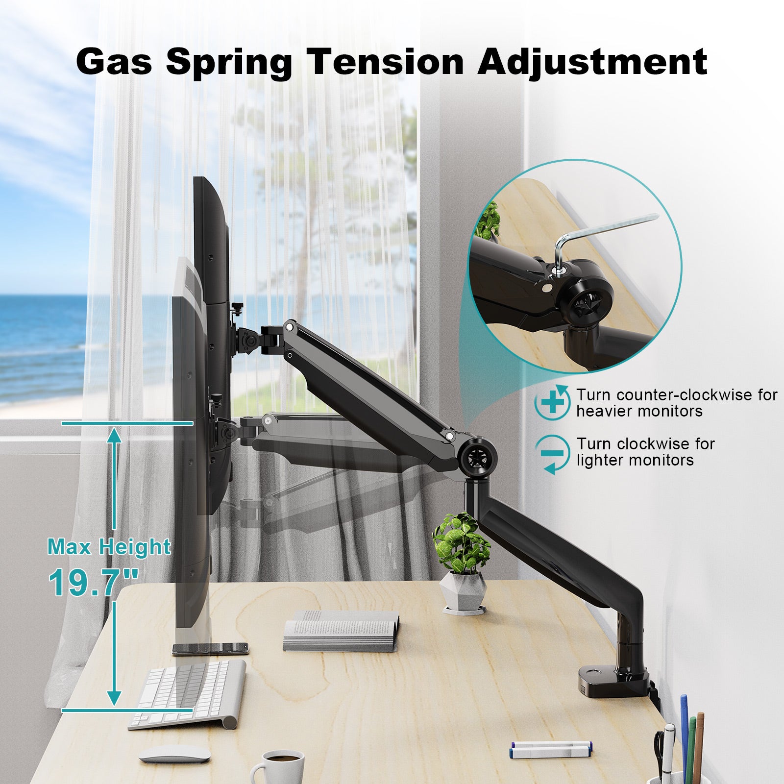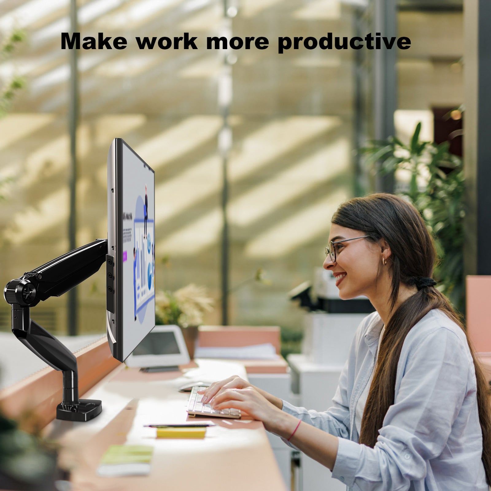 - Stay Healthy and Focused - Have you ever suffered from neck, and shoulder after a long time working at your desk? This single monitor mount makes your daily work environment very different. The premium monitor arm can extend up to 22.6" long, and rise up to 19.7" height. Our heavy duty monitor arm can easily adjust to the best position that suits your sitting or standing style, improving your posture for productive work.