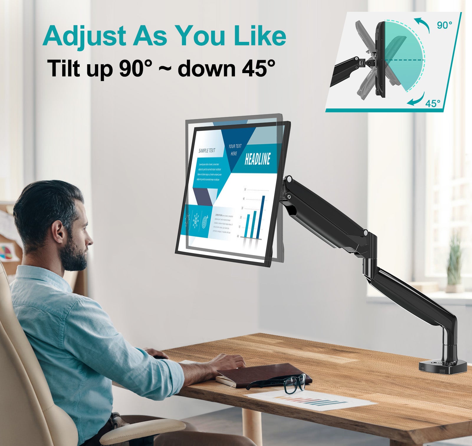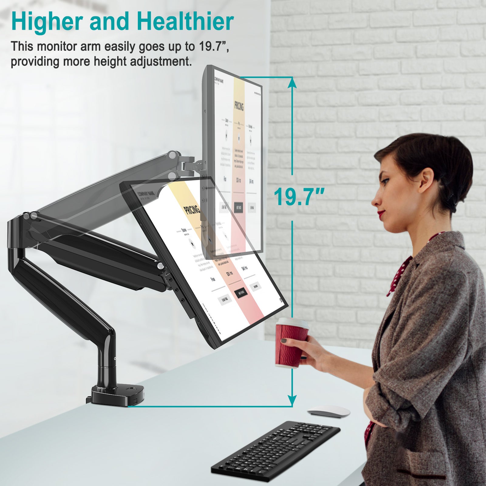 - Longer and Higher Monitor Arm - Compared to a common single computer monitor mount, the arm easily goes up to 19.7", providing more height adjustment for your monitor to find an ergonomic height. Even better, this monitor arm extends to 22.6", perfect for deeper desktops.