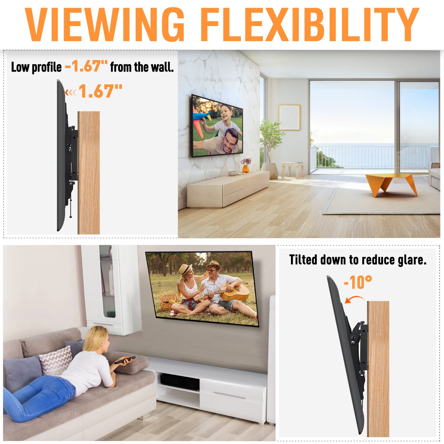 - Enhanced Viewing Experience——MOUNT PRO Tilting TV Wall Mount features a built-in 8° downward tilt to reduce glare and provide a more comfortable viewing angle for optimal viewing.