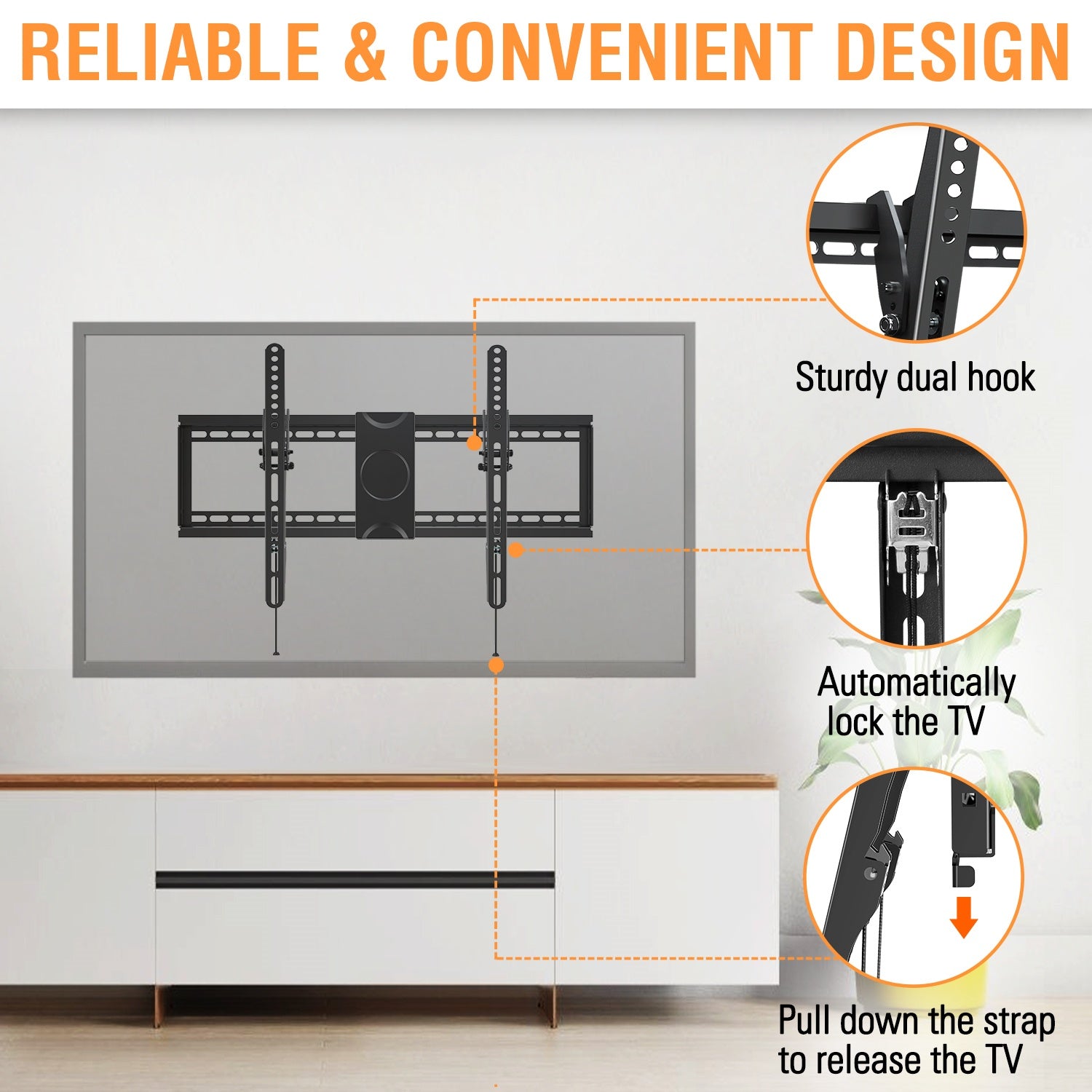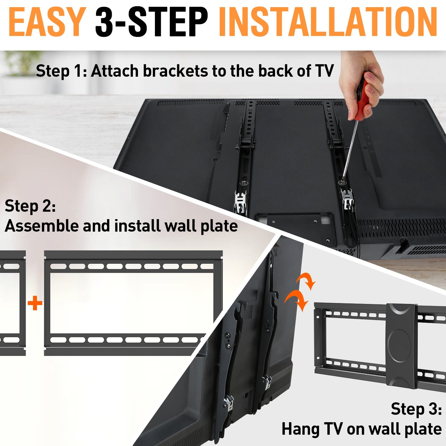 - Easy Installation——Designed with a user-friendly pull-cord locking mechanism, this mount allows you to quickly lock or release your TV from the wall plate. All necessary hardware is included, along with a detailed, easy-to-follow installation guide.