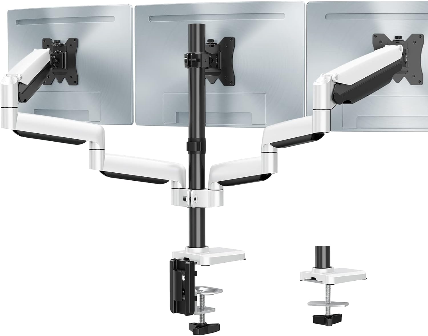 MOUNT PRO Triple Monitor Mount, 3 Monitor Desk Mount for There Screens up to 32 Inch, Full Motion Gas Spring Triple Monitor Stand, Heavy Duty Monitor Arm Hold up to 30.9lbs Each, VESA Mount, White
