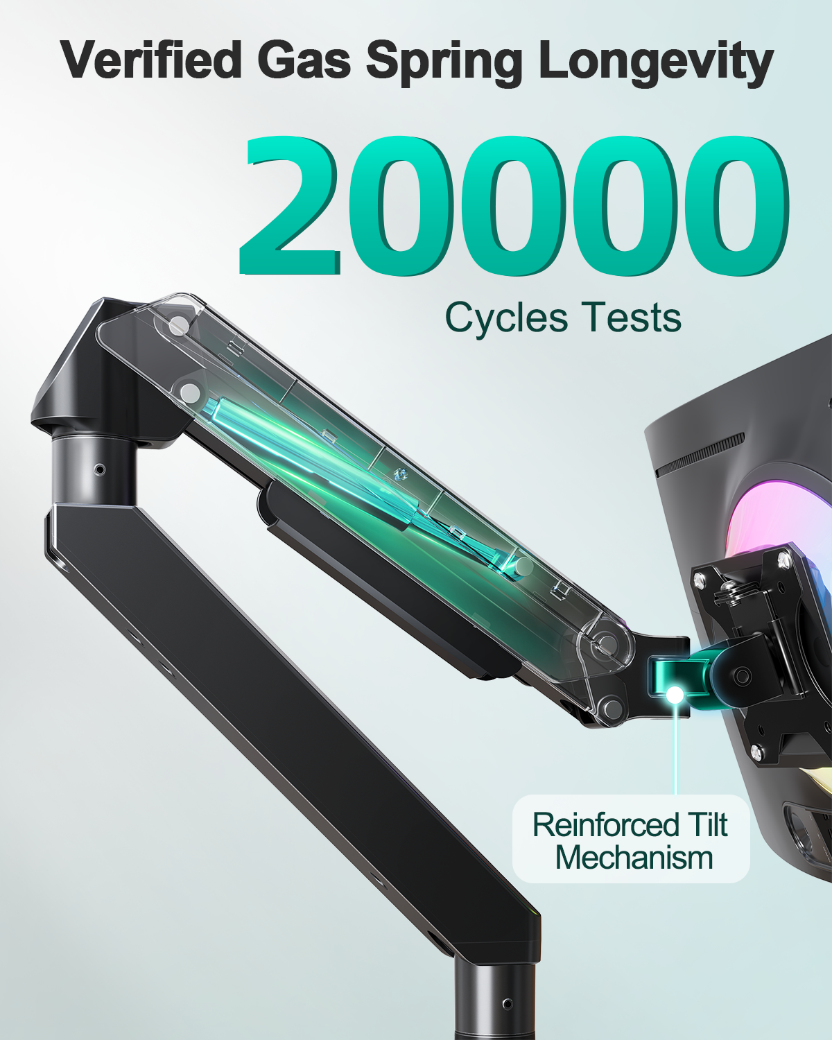 - Impressive Stability & Durability - The reinforced tilt mechanism of this mount is updated for improved support to keep the screen from sagging. It has passed rigorous testing, including a 20,000-cycle gas spring test, ensuring long-term stability & durability.