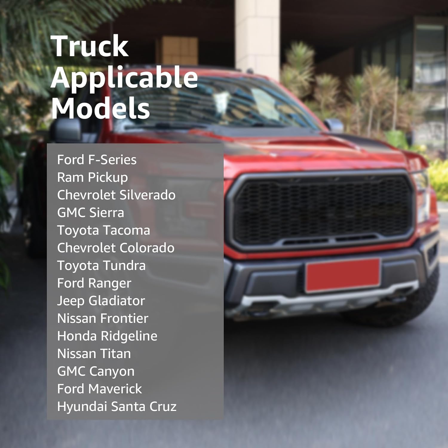 - Ustomized for Truck: Measures 60” L x 50.7” W, it's niquely designed and customized for truck. Such as Ford F-Series/Ram Pickup/Chevrolet Silverado/GMC Sierra/Toyota Tacoma/Chevrolet Colorado/Toyota Tundra/Ford Ranger/Jeep Gladiator/Nissan Frontier/Honda Ridgeline/Nissan Titan/GMC Canyon/Ford Maverick/Hyundai Santa Cruz. It offers a snug, flat fit. Especially for ford f150 seat covers.