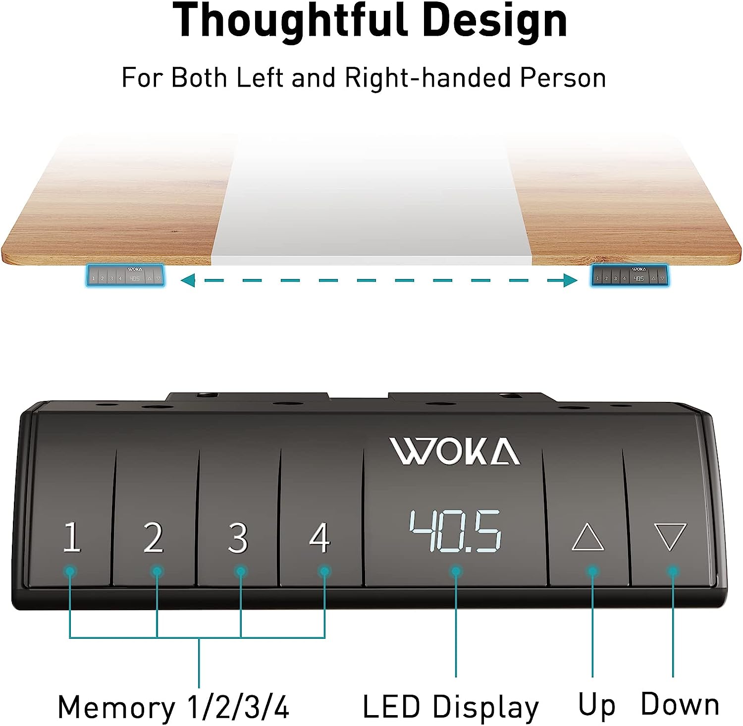 WOKA 55 x 28 Inch Electric Standing Desk, Height Adjustable Stand Up Desk, Sit Stand Desk with Memory Controllers, Adjustable Desk for Home Office with Deep Oak and White Top and White Frame
