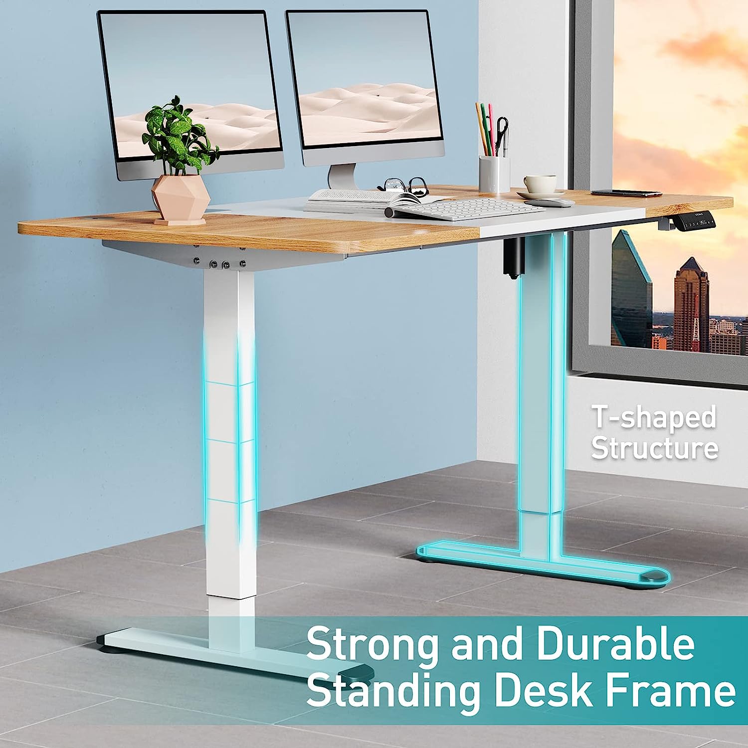 - Sturdy Structure for Durable and Flexible Use - The base of the motorized standing desk is made from steel and the top has a laminated finish that looks pretty stylish. T-shaped desk leg design for enhanced desktop stability. Double crossbars design for better stability. With thickened metal legs, the electric adjustable desk is stronger and more durable and less prone to deformation.
