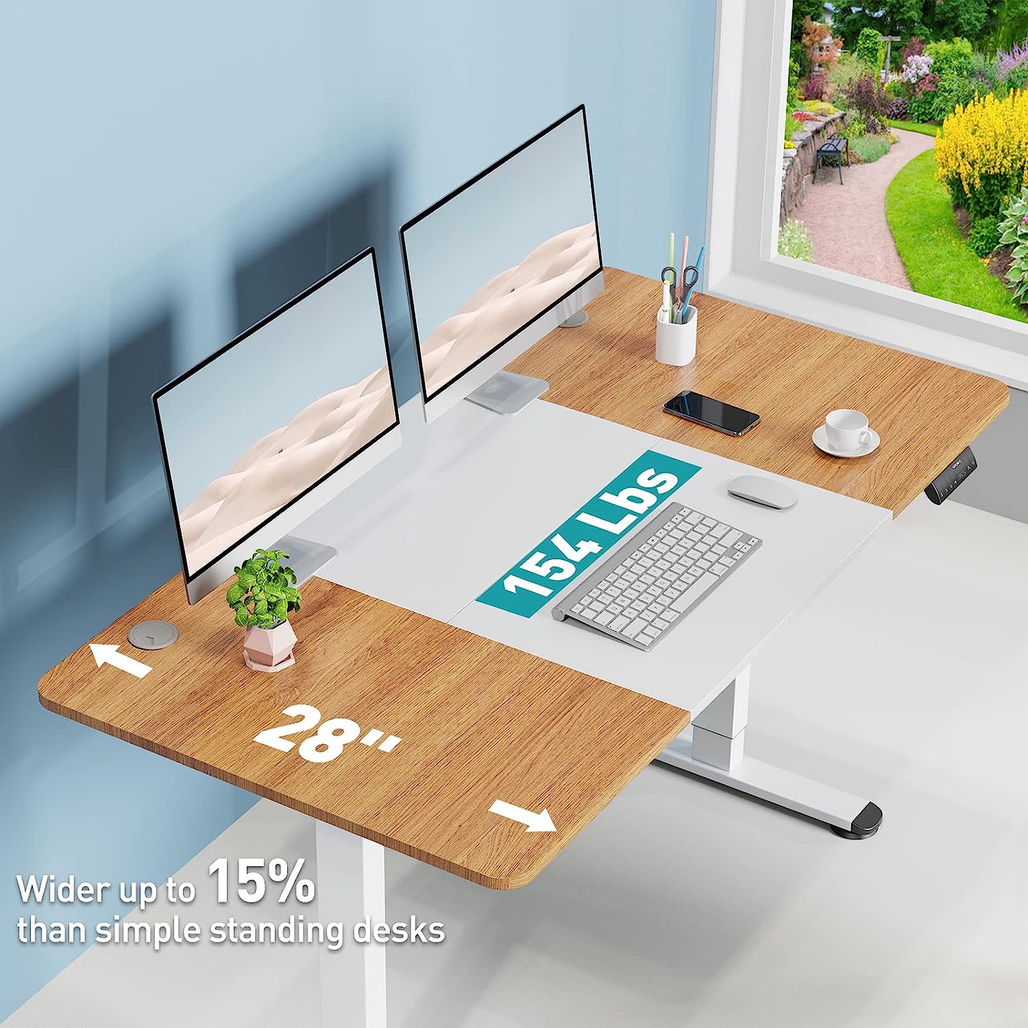 - Elegant Desktop with Personality - Need more desk space? The extra-large 55’’ x 28’’ desktop, with a lifting capacity of 154 lbs, provides more space and comfort for your busy working hours. Enjoy your work at an elegant desktop without compromising. If you're looking for a unique wood desktop, the wood board boasts a smooth and even appearance. You'll love the subtle variations in its wood planks and the color matching, which help make this desktop so popular.