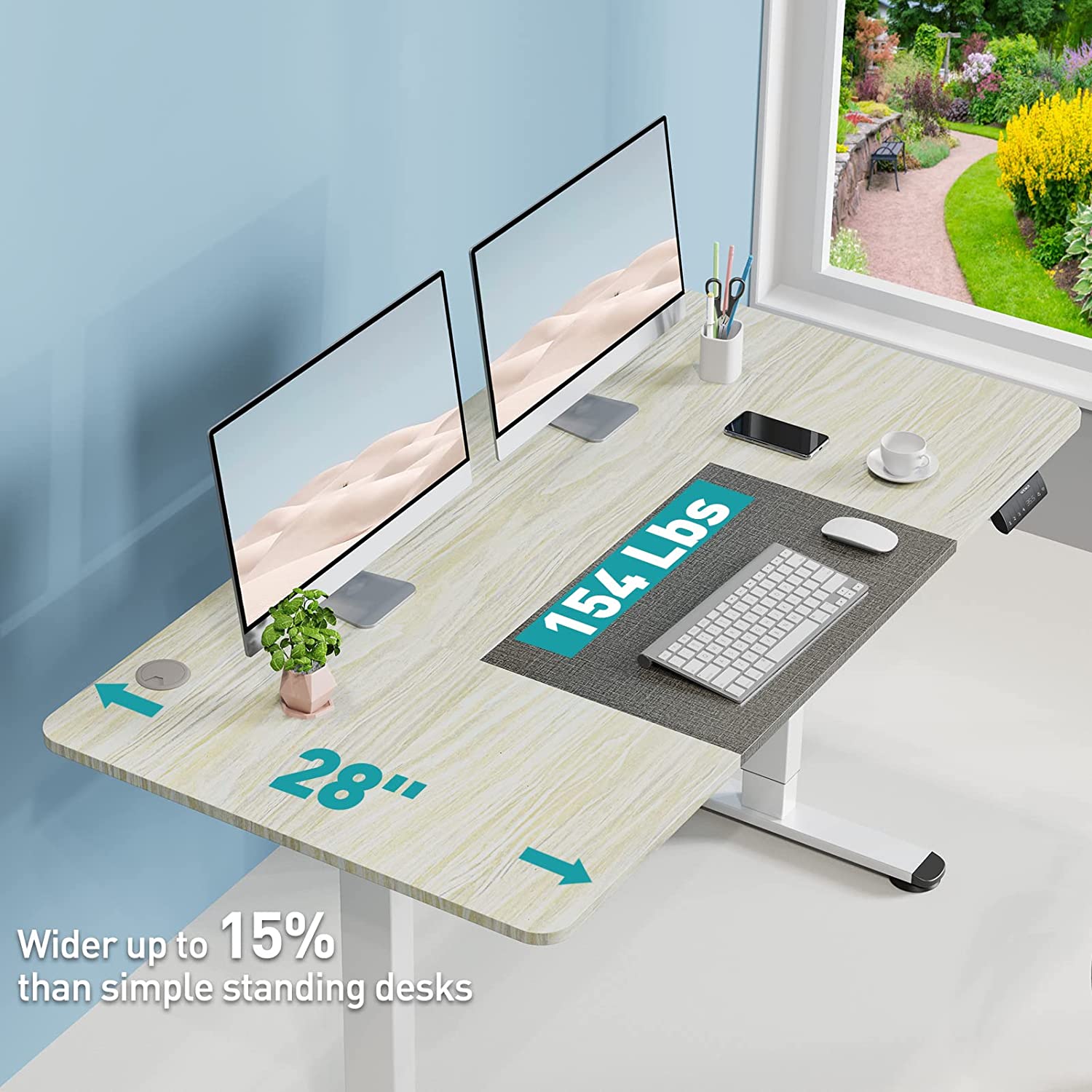 - Elegant Desktop with Personality - Need more desk space? The extra-large 55’’ x 28’’ desktop, with a lifting capacity of 154 lbs, provides more space and comfort for your busy working hours. Enjoy your work at an elegant desktop without compromising. If you're looking for a unique wood desktop, the wood board boasts a smooth and even appearance. You'll love the subtle variations in its wood planks and the color matching, which help make this desktop so popular.