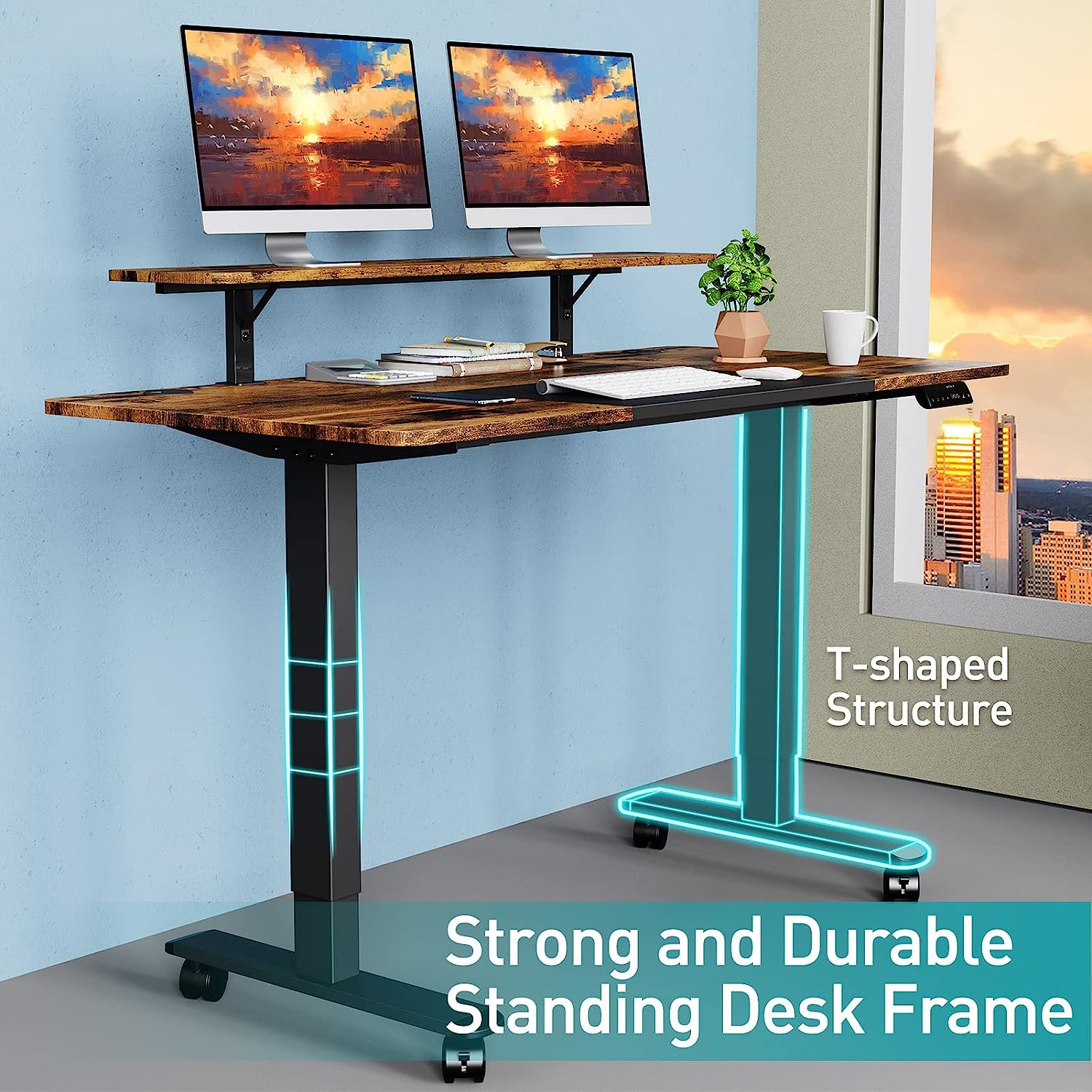 - Sturdy Structure for Durable and Flexible Use - The base of the sit stand desk on wheels is made from steel and the top has a laminated finish that looks pretty stylish. T-shaped desk leg design for enhanced desktop stability. Double crossbars design for better stability. With thickened metal legs, the motorized standing desk is stronger and more durable and less prone to deformation.