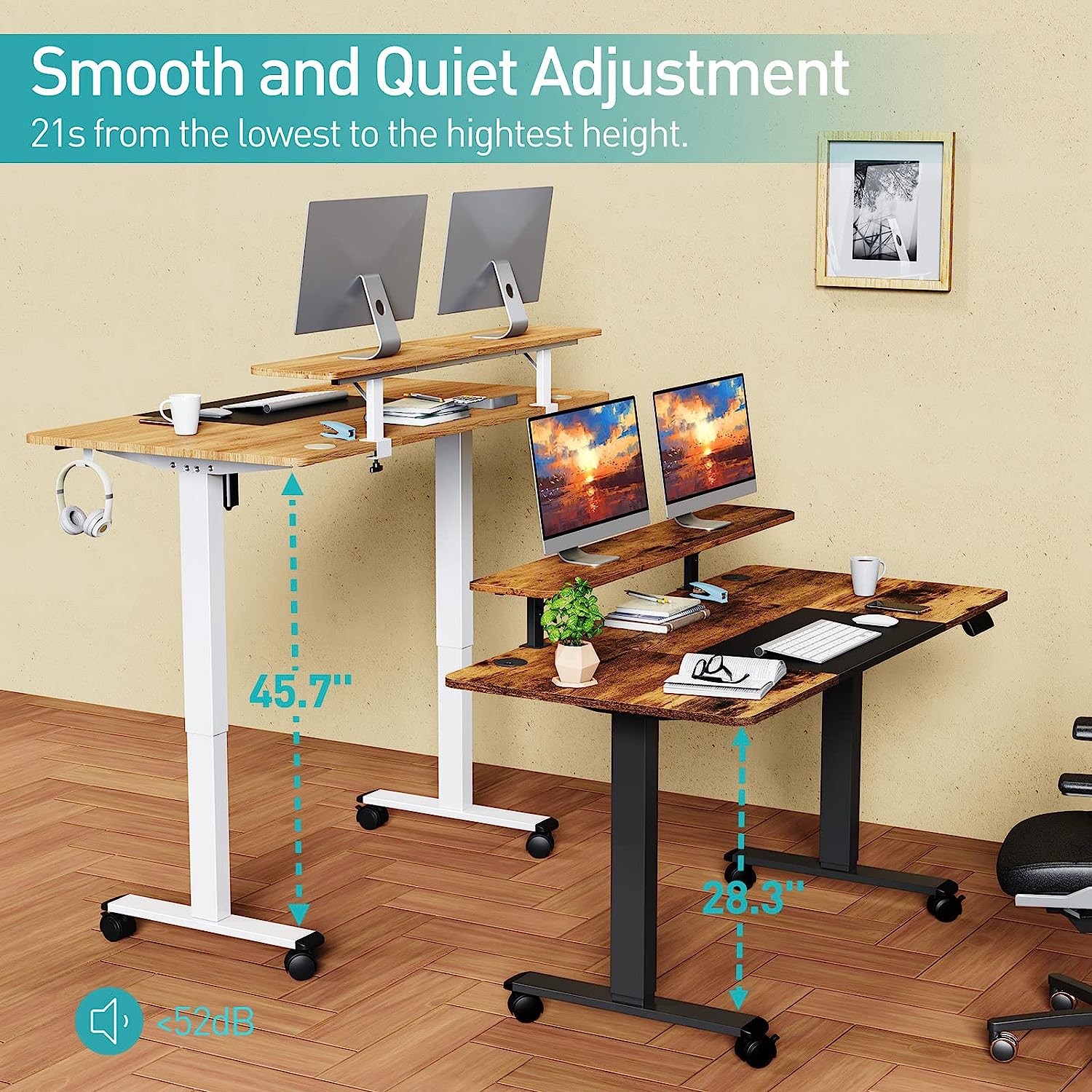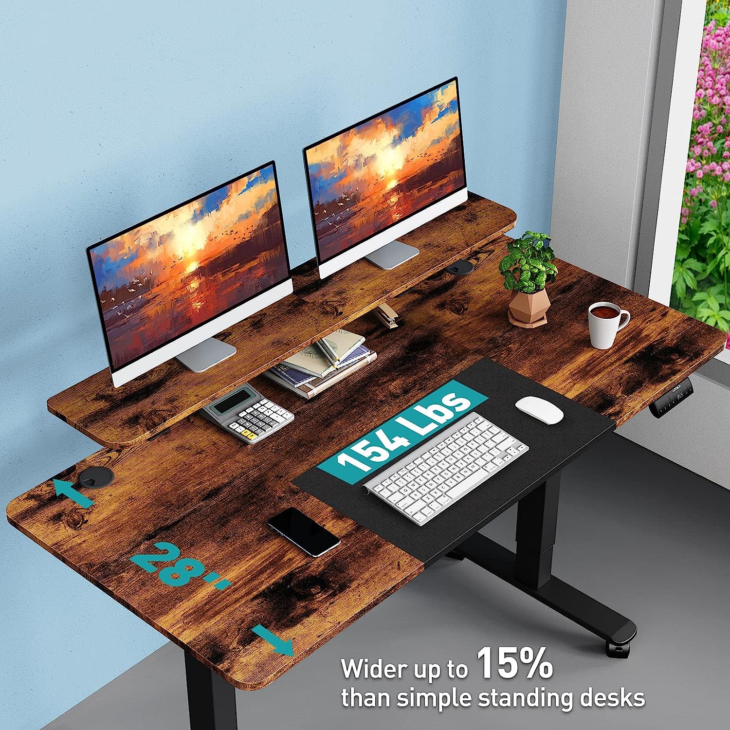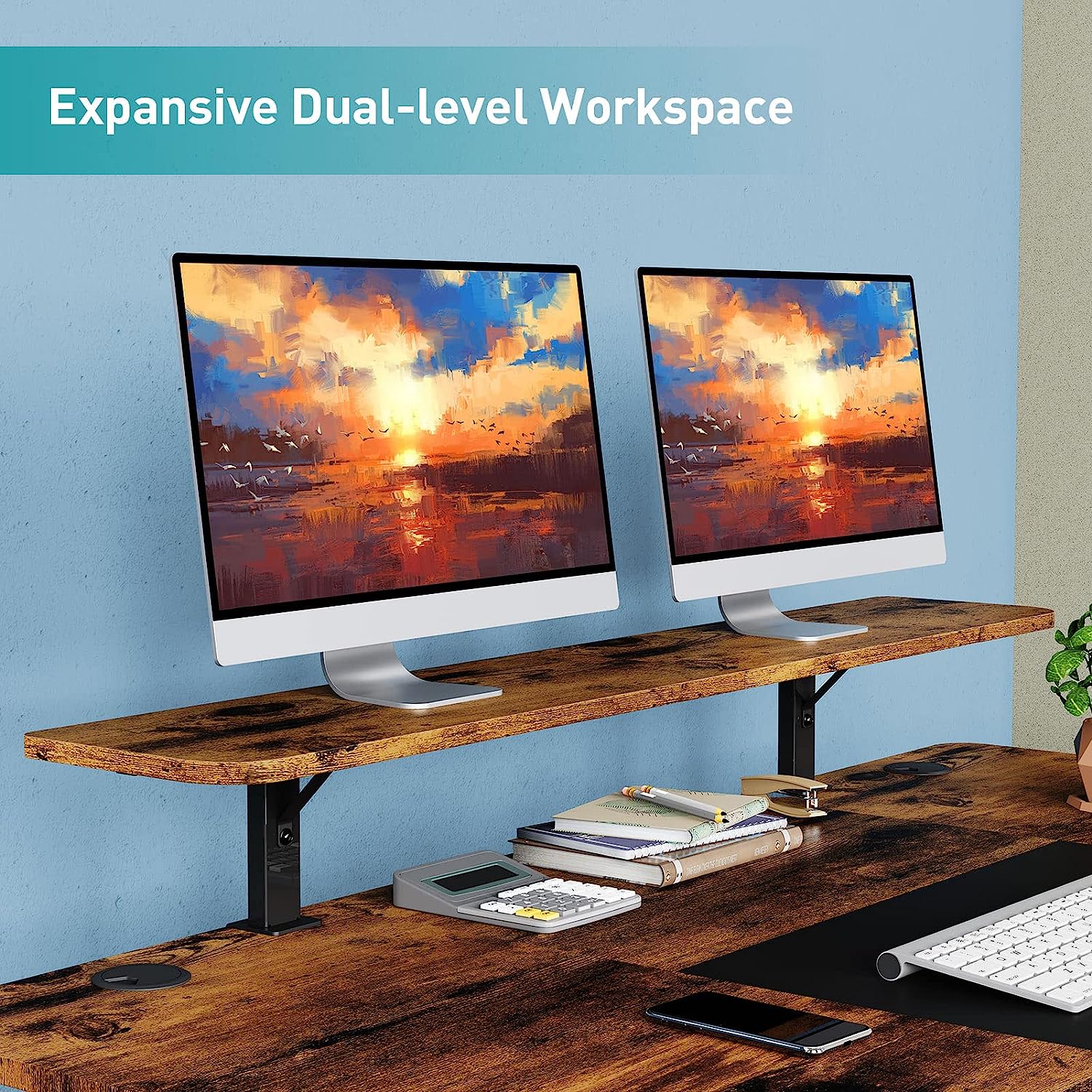- Elegant Desktop with Personality - Need more desk space? The extra-large 55.1’’ x 27.5’’ desktop and added monitor stand, with a lifting capacity of 154 lbs, provides more space and comfort for your busy working hours. The standing desk features a two-tier design that helps to support proper posture, whether sitting or standing. If you're looking for a unique wood desktop,you'll love the subtle variations in its wood planks and the color matching, which help make this desktop so popular.