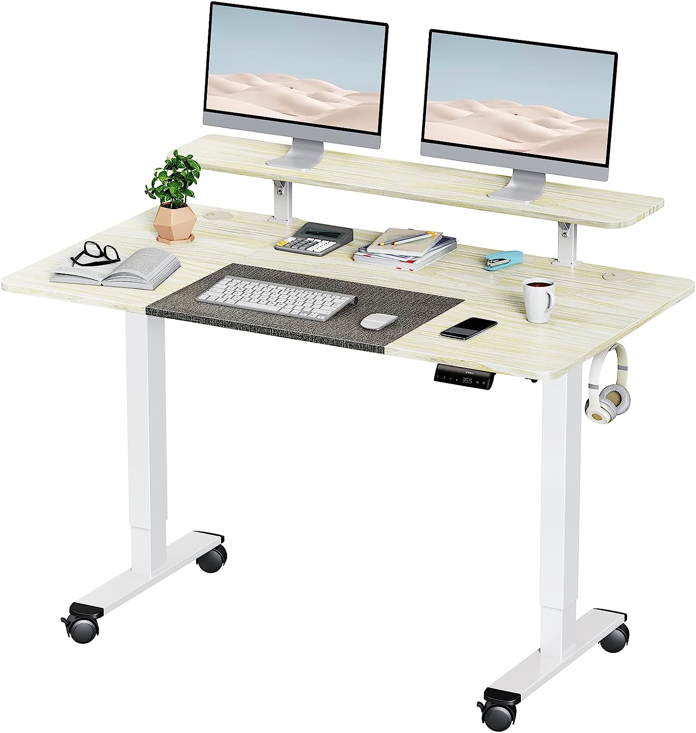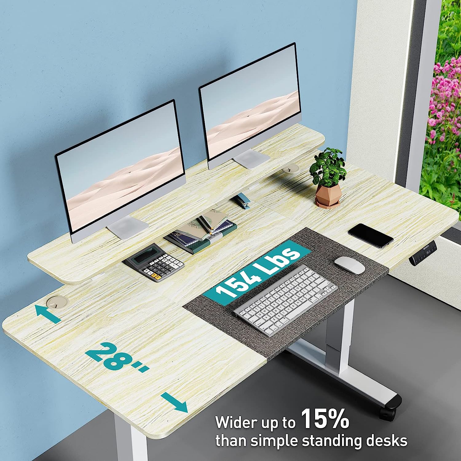 - Elegant Desktop with Personality - Need more desk space? The extra-large 55.1’’ x 27.5’’ desktop and added monitor stand, with a lifting capacity of 154 lbs, provides more space and comfort for your busy working hours. The standing desk features a two-tier design that helps to support proper posture, whether sitting or standing. If you're looking for a unique wood desktop,you'll love the subtle variations in its wood planks and the color matching, which help make this desktop so popular.