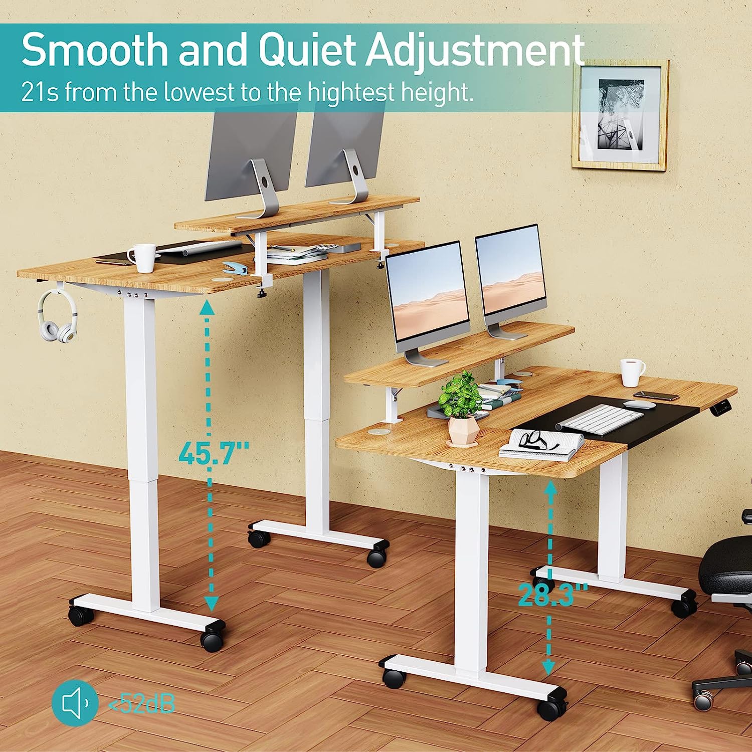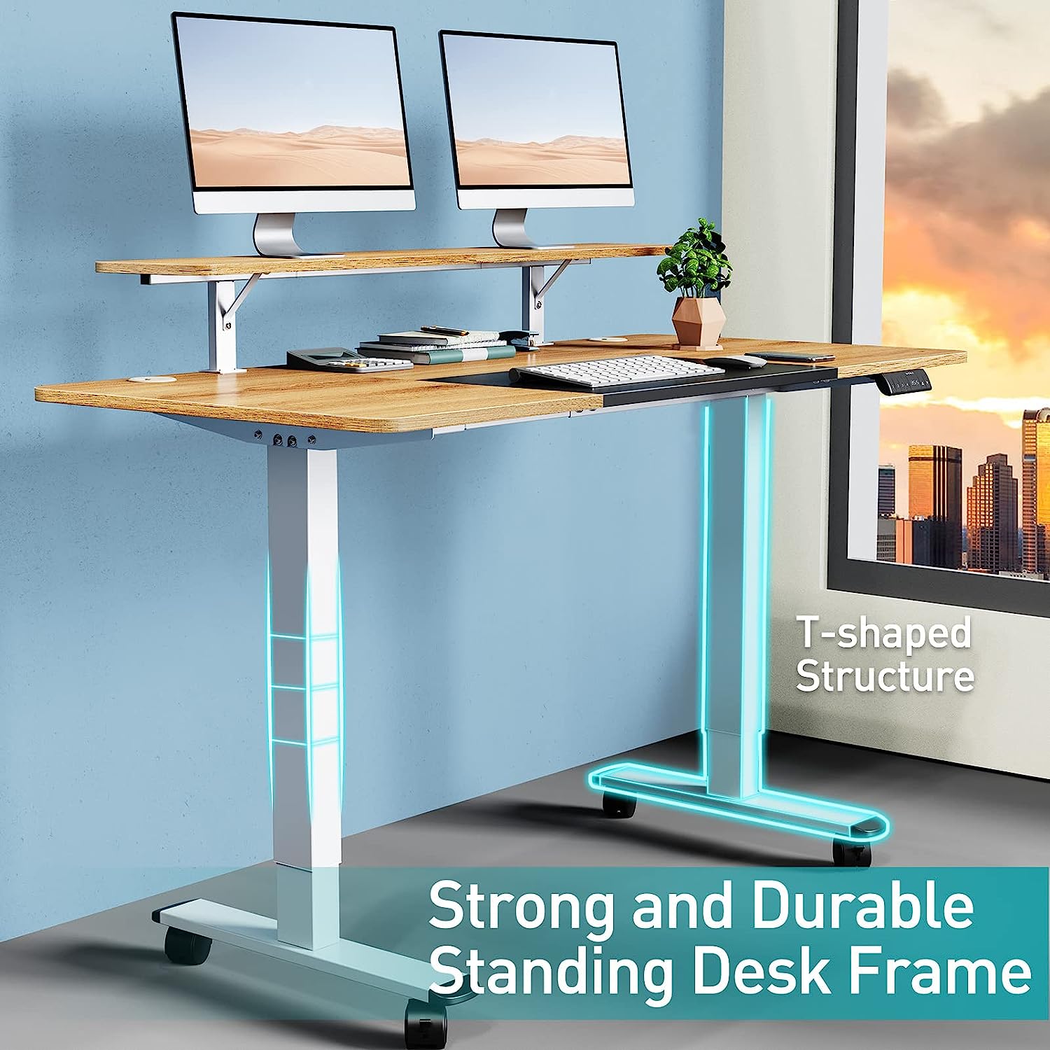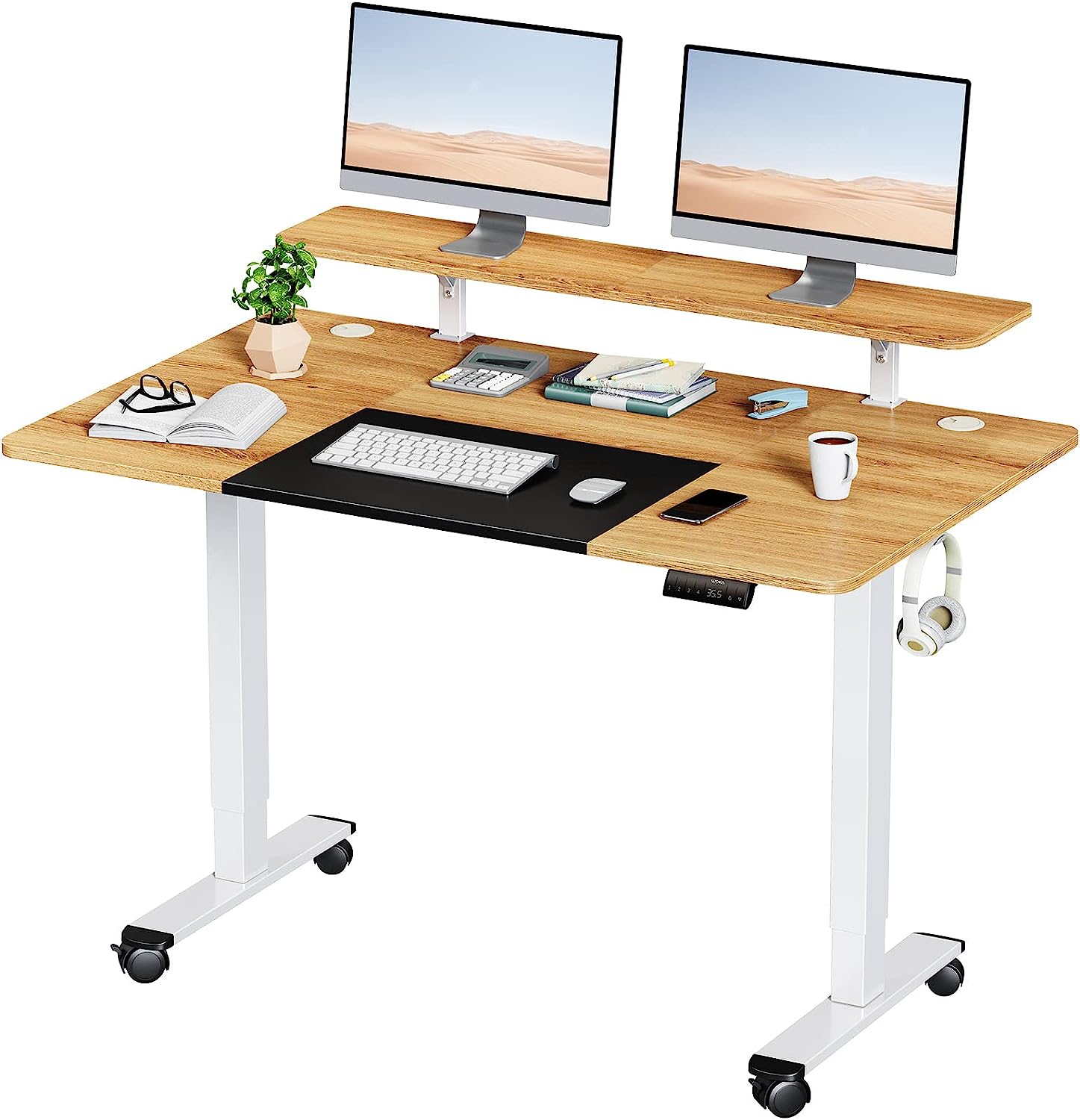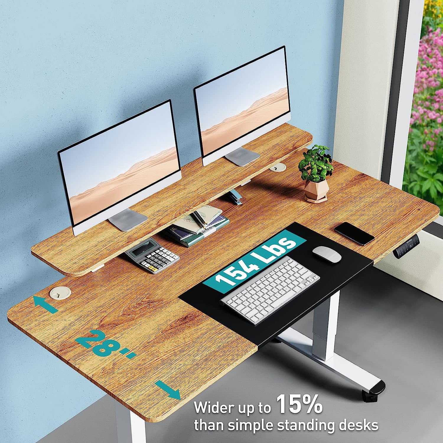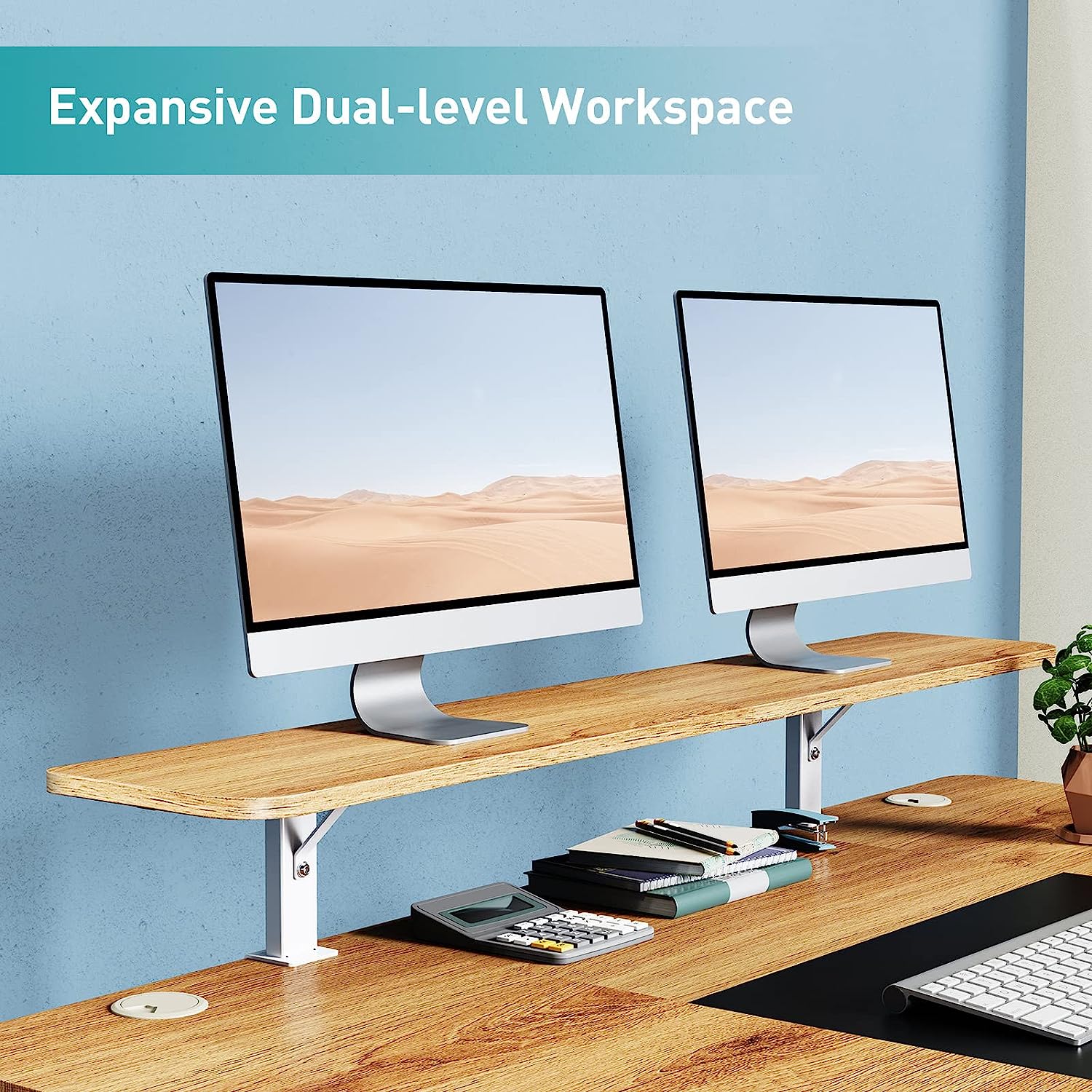 - Elegant Desktop with Personality - Need more desk space? The extra-large 55.1’’ x 27.5’’ desktop and added monitor stand, with a lifting capacity of 154 lbs, provides more space and comfort for your busy working hours. The standing desk features a two-tier design that helps to support proper posture, whether sitting or standing. If you're looking for a unique wood desktop,you'll love the subtle variations in its wood planks and the color matching, which help make this desktop so popular.