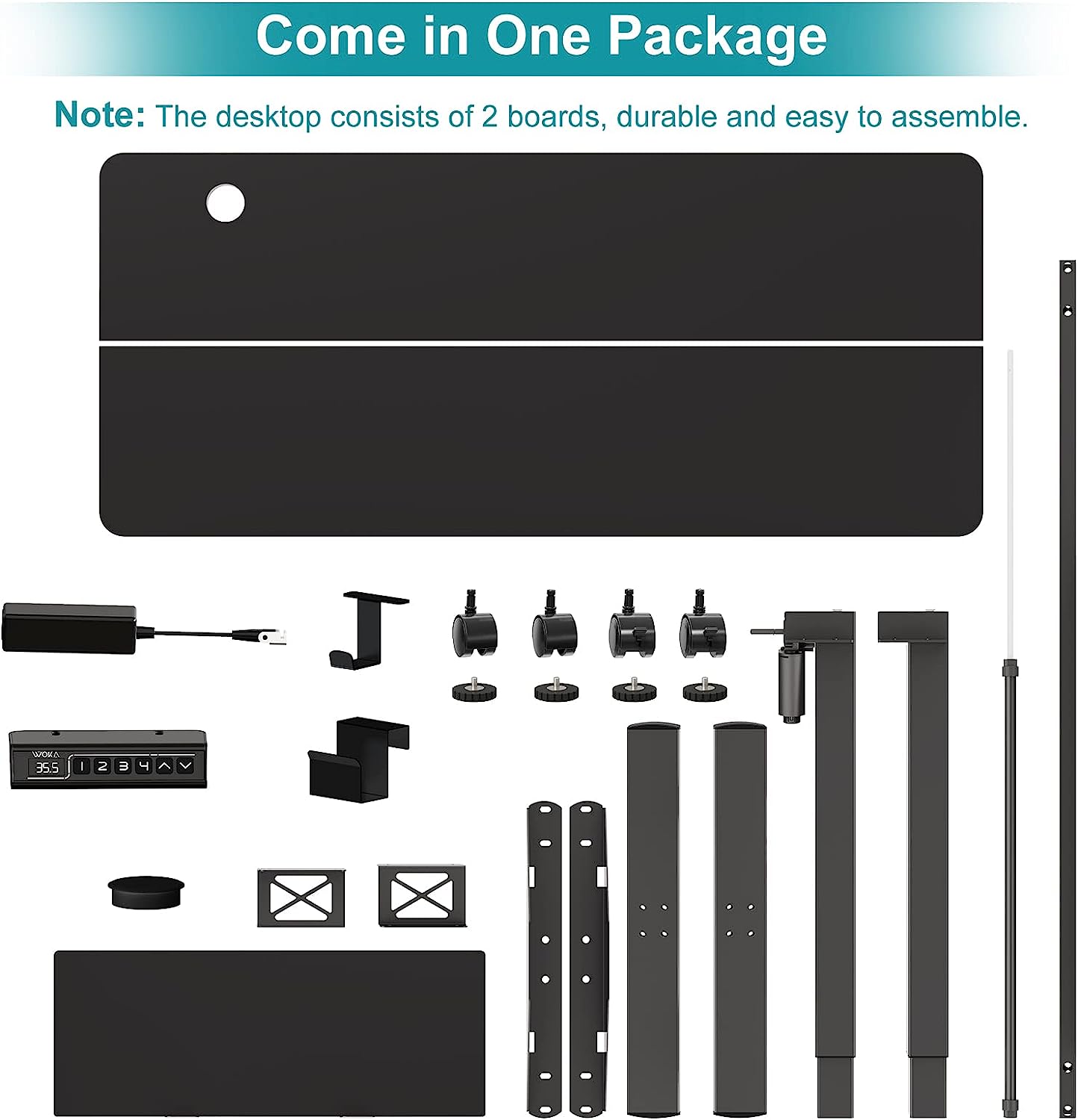 - Got Your Covered - WOKA invested in quick and easy product assembly, also well protecting and shipping the stand up desk frame and tabletop within one package. Feel free to reach to us if you have any concerns with this desk, your satisfaction is our priority.