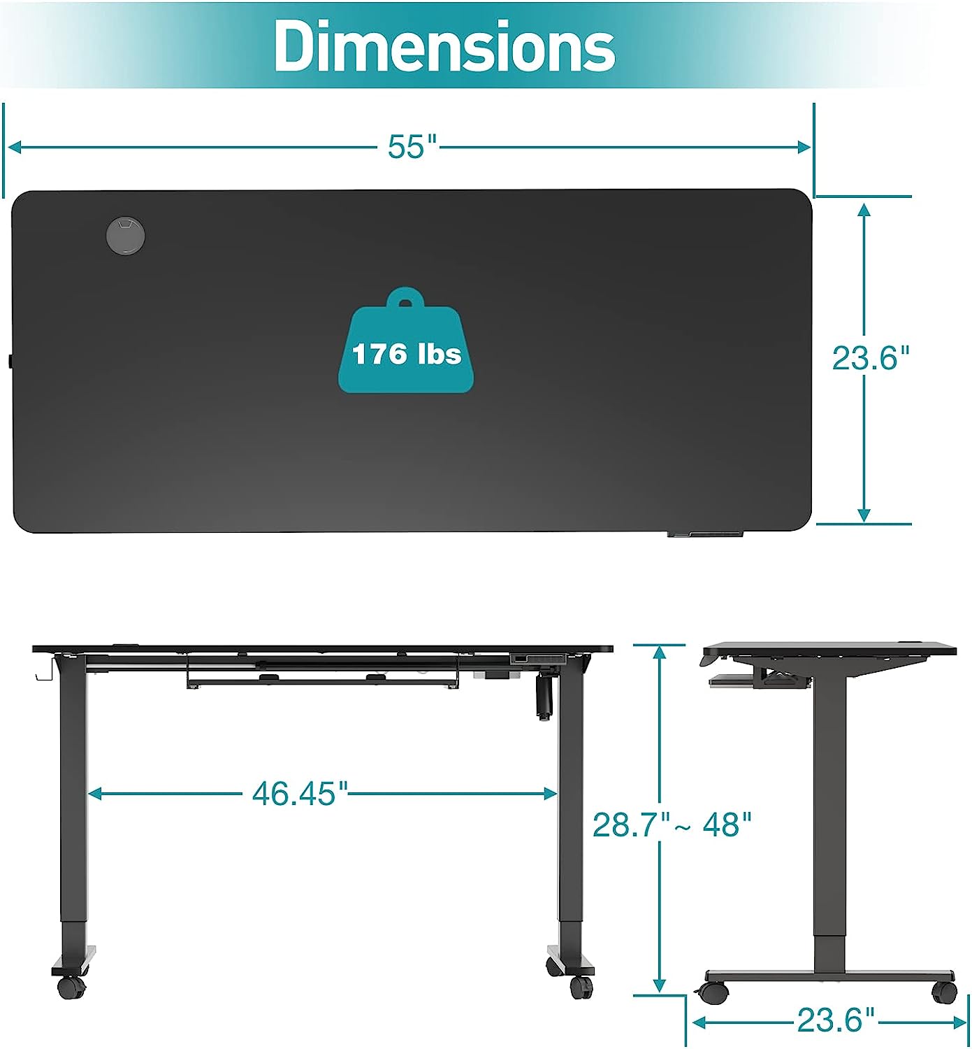 - Ergonomic Spacious Workspace: The large work surface measuring 55" x 24" eco-friendly desktop, offering a roomy setup for 2-3 monitors and a laptop. The tabletop is waterproof and wear-resistant. The equipped wire collection holes to keep your office area neat and tidy.