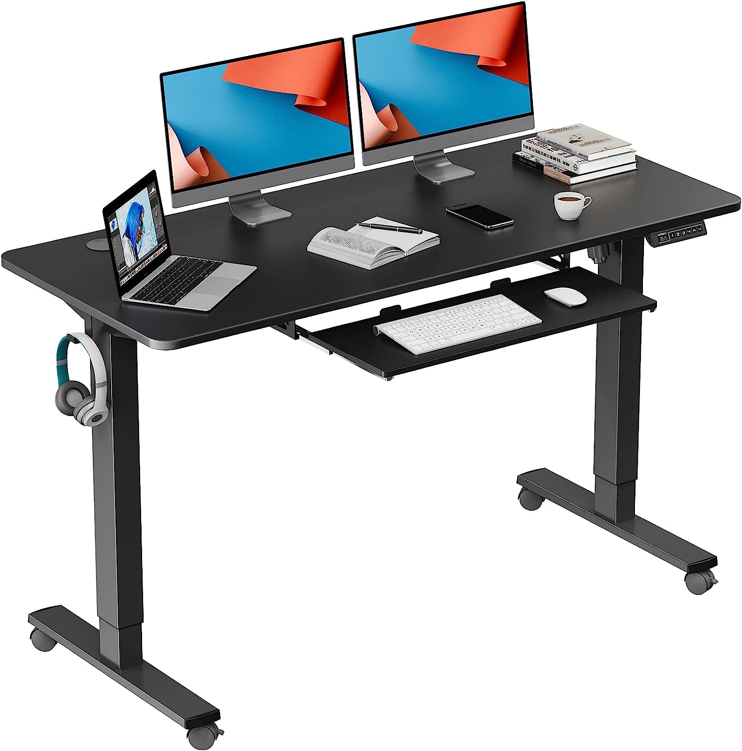 WOKA Electric Standing Desk with Keyboard Tray, 55" x 24" Stand Up Desk, Height Adjustable Sit Stand Desk with Memory Controller for Home Office, Motorized Desk with Splice Board, Black