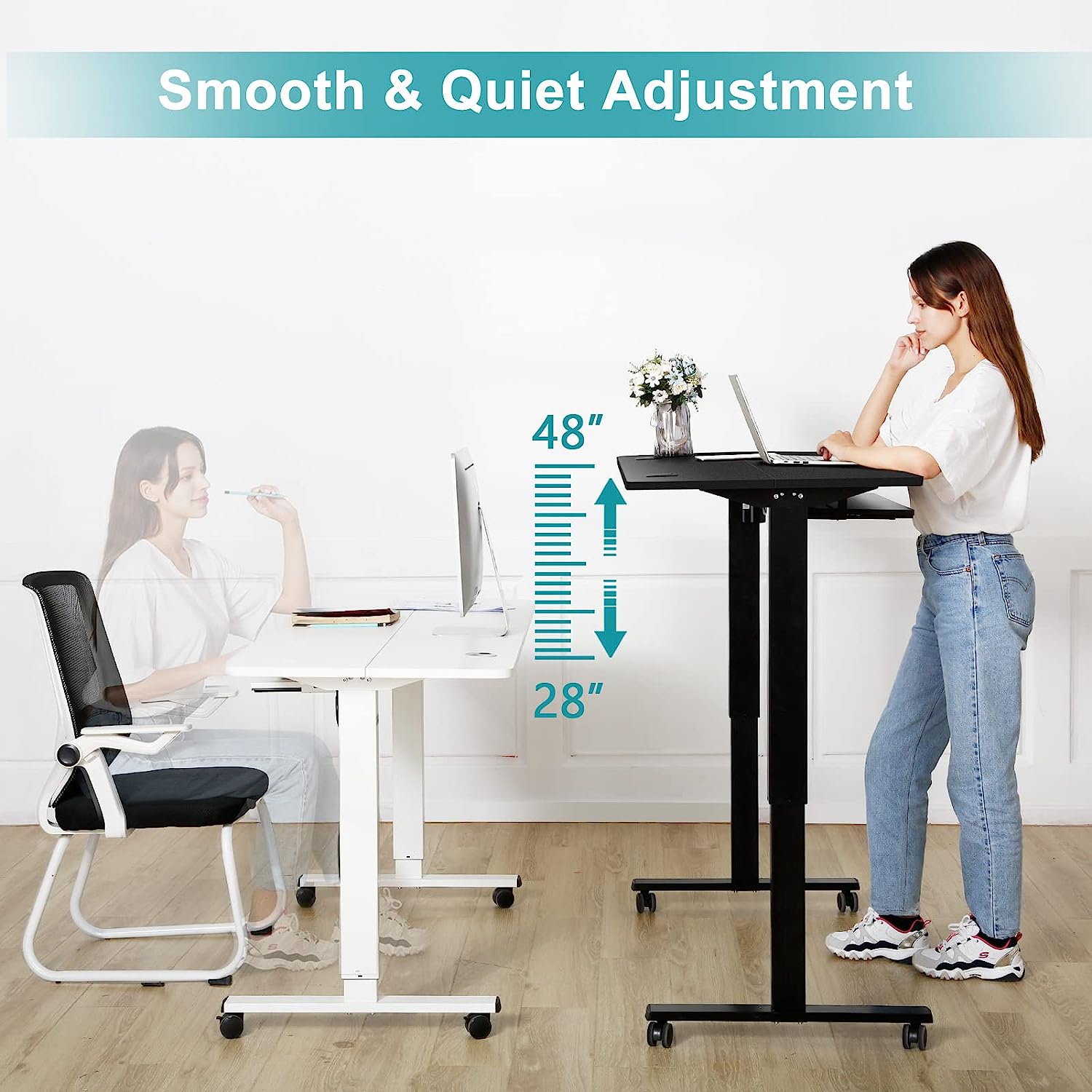 - Electric Height Adjustable - The sit stand desk system offers height adjustment from 28.74" to 48.03". With 4 memory settings, you can save a number of preferred heights to which the desk can be set automatically, minimizing the need to continually fiddle with the height. It's important to strike a balance between sitting and standing throughout the day.