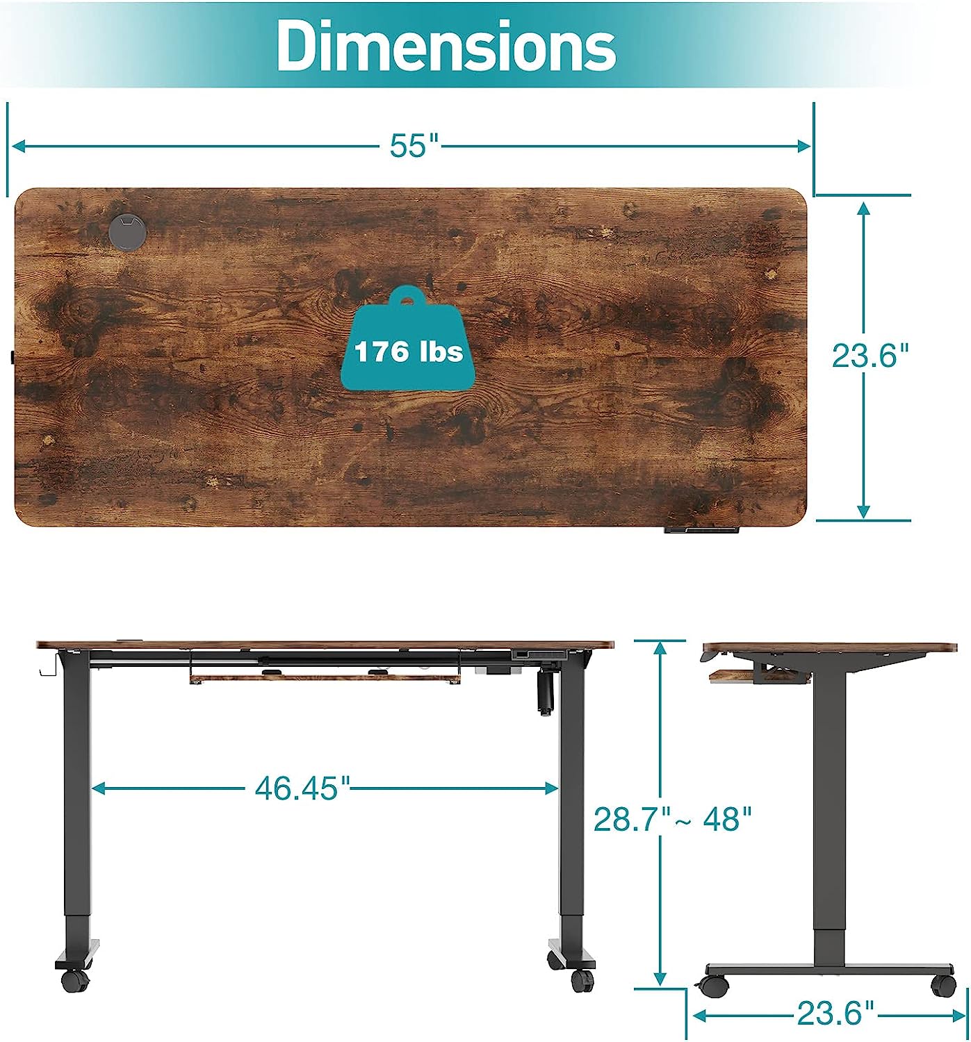 - Ergonomic Spacious Workspace: The large work surface measuring 55" x 24" eco-friendly desktop, offering a roomy setup for 2-3 monitors and a laptop. The tabletop is waterproof and wear-resistant. The equipped wire collection holes to keep your office area neat and tidy.