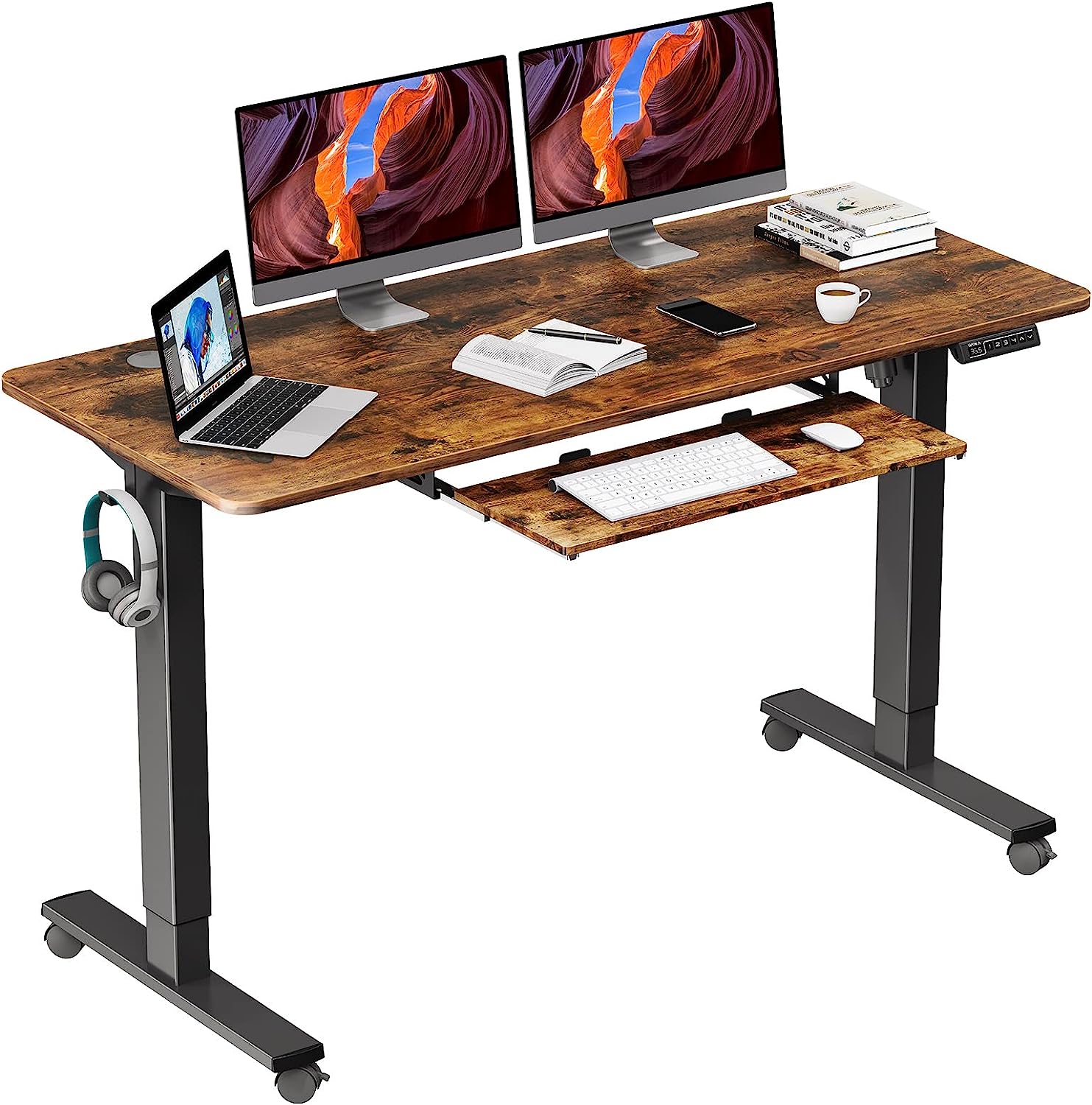 WOKA Electric Standing Desk with Keyboard Tray, 55" x 24" Stand Up Desk, Height Adjustable Sit Stand Desk with Memory Controller for Home Office, Motorized Desk with Splice Board, Rustic