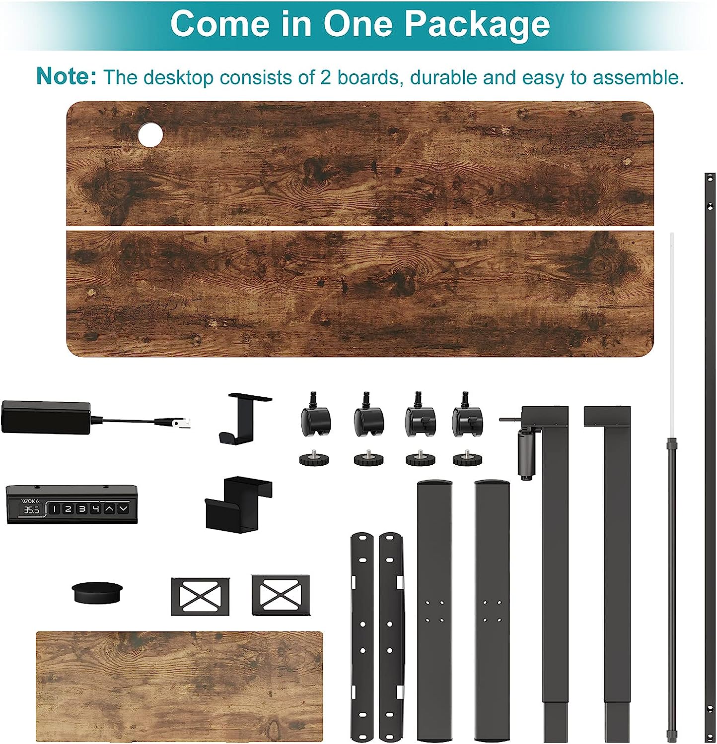 - Got Your Covered - WOKA invested in quick and easy product assembly, also well protecting and shipping the stand up desk frame and tabletop within one package. Feel free to reach to us if you have any concerns with this desk, your satisfaction is our priority.