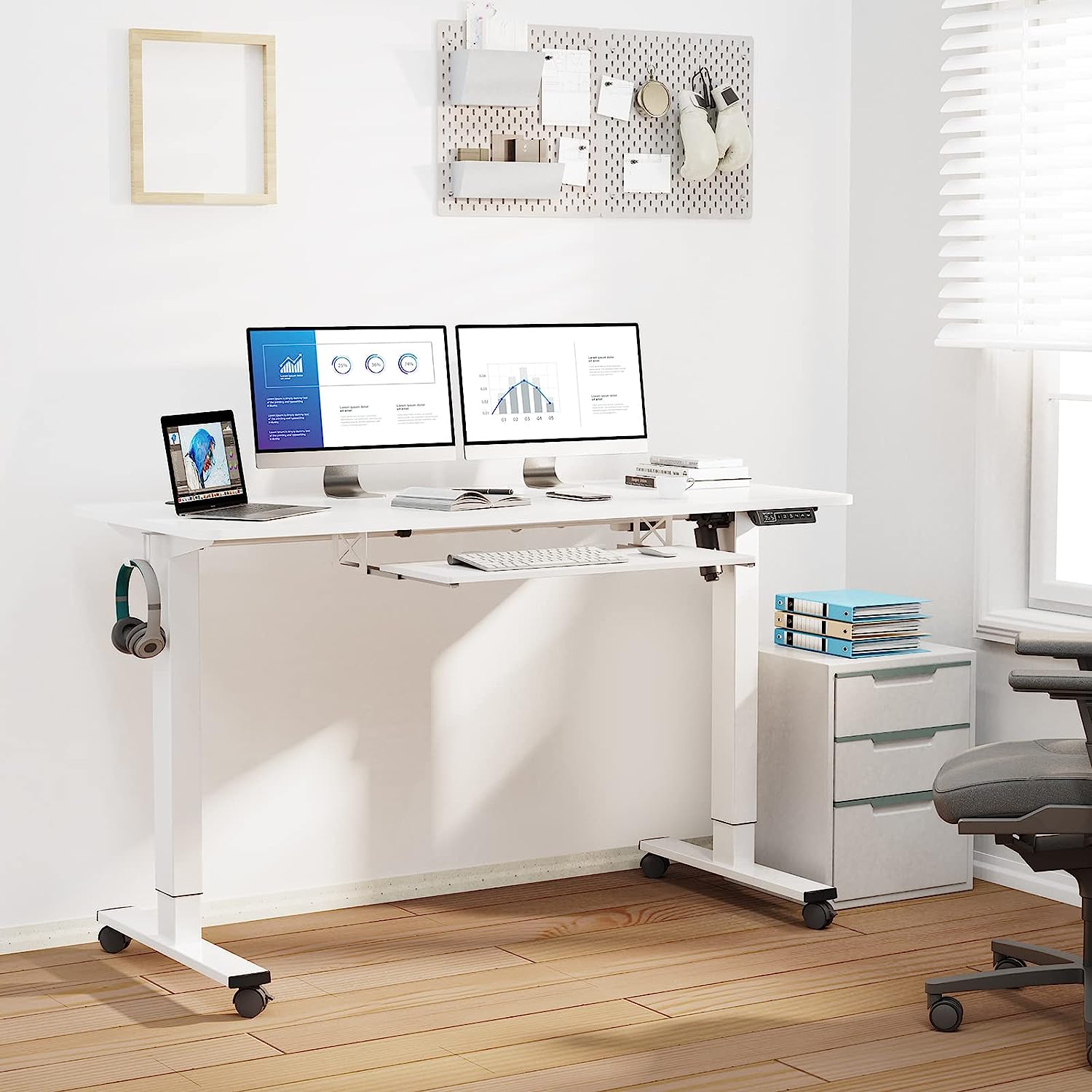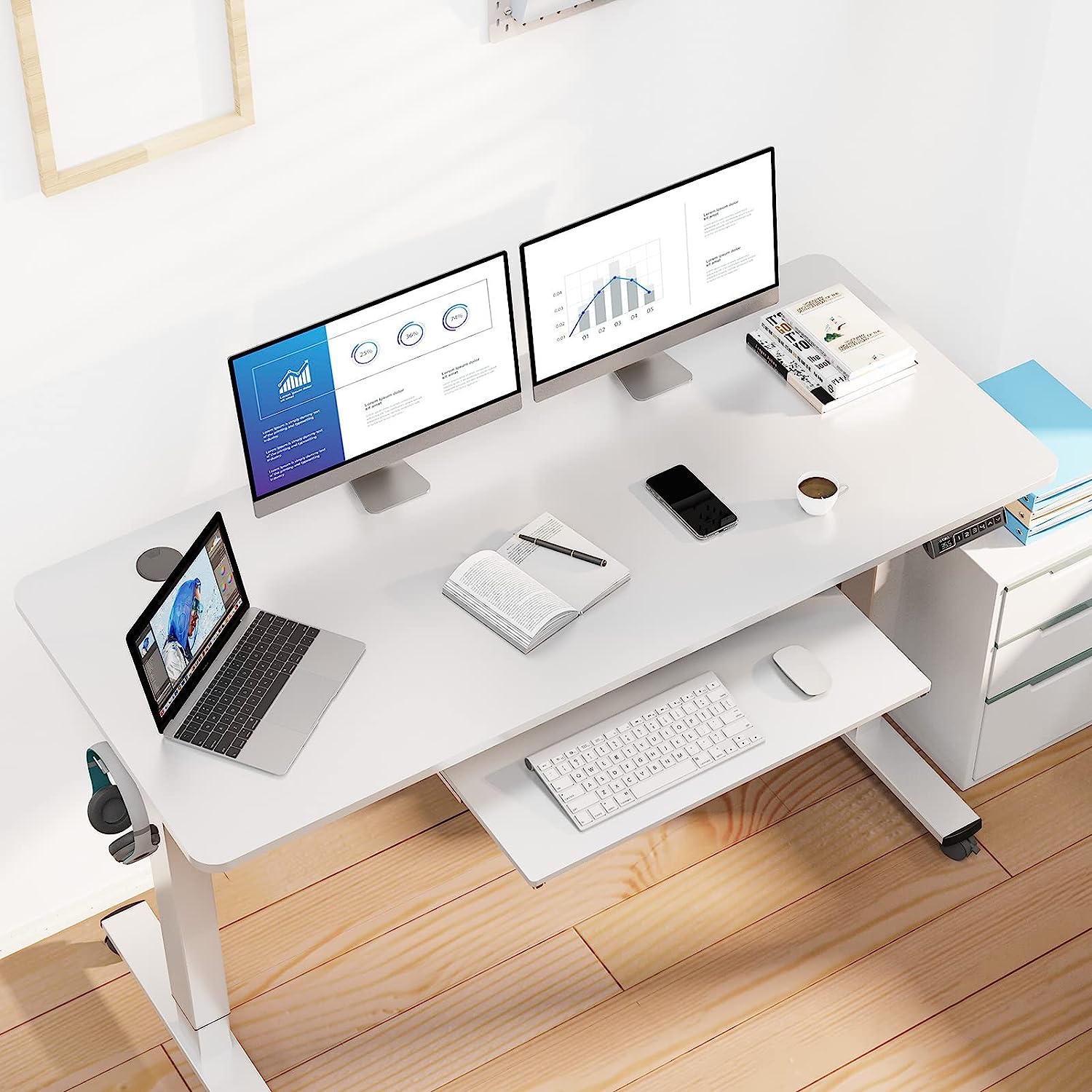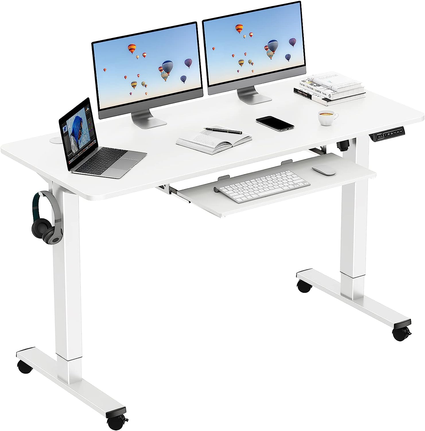 WOKA Electric Standing Desk with Keyboard Tray, 55" x 24" Stand Up Desk, Height Adjustable Sit Stand Desk with Memory Controller for Home Office, Motorized Desk with Splice Board, White