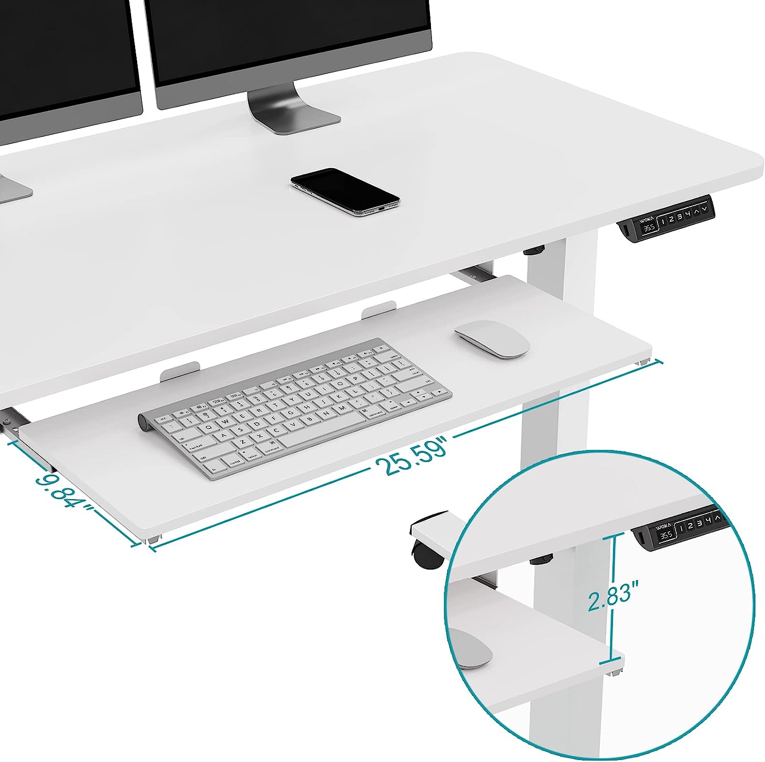 - Smooth Keyboard Tray: A convenient pull-out keyboard tray (25.59" x 9.84") keeps your mouse and keyboard organized and accessible. It can provide ergonomic comfortable typing experience during a long work day. It fits up to a 2.83" height keyboard boosting your productivity working from home.