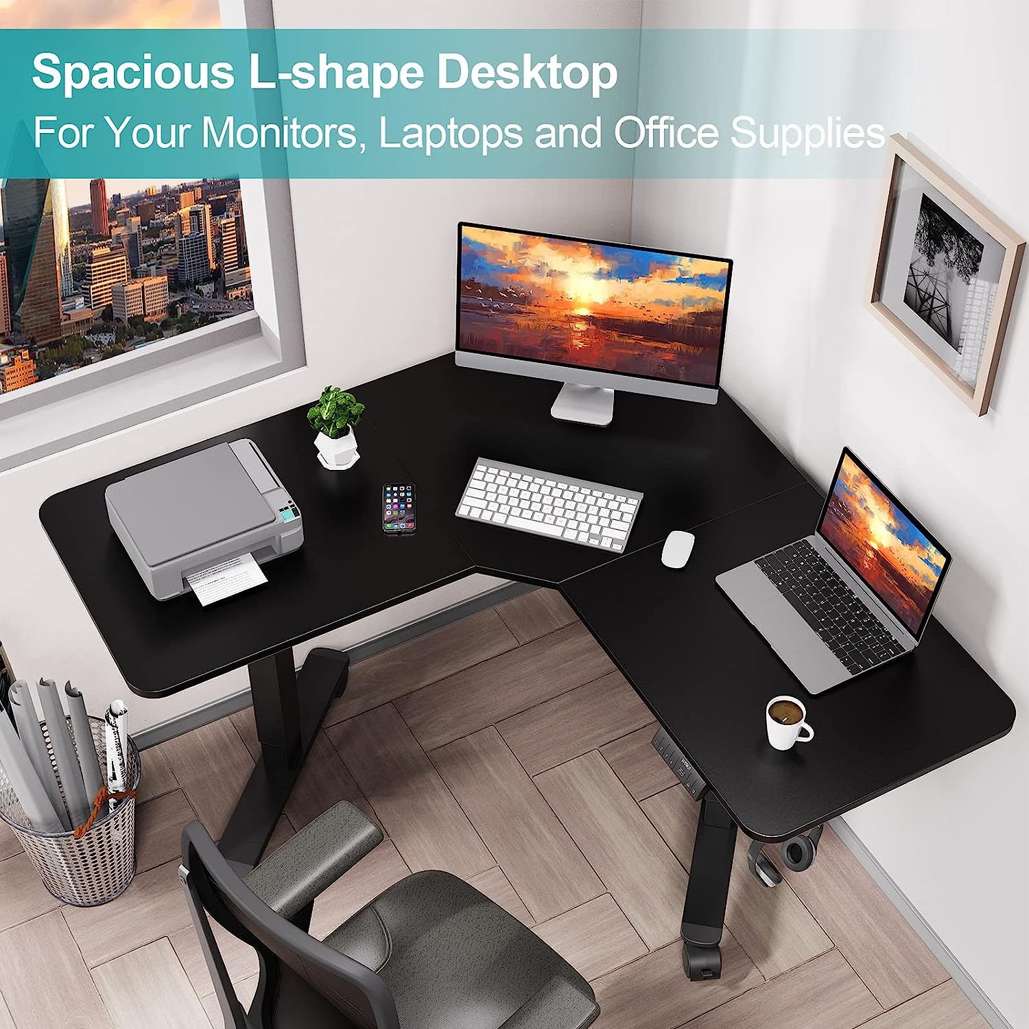 WOKA L Shaped Standing Desk, 48 x 48 Inches,Height Adjustable Electric Stand Up Desk, Sit Stand Desk with Memory Controller for Home Office, Motorized Corner Standing Desk with Splice Board, Black